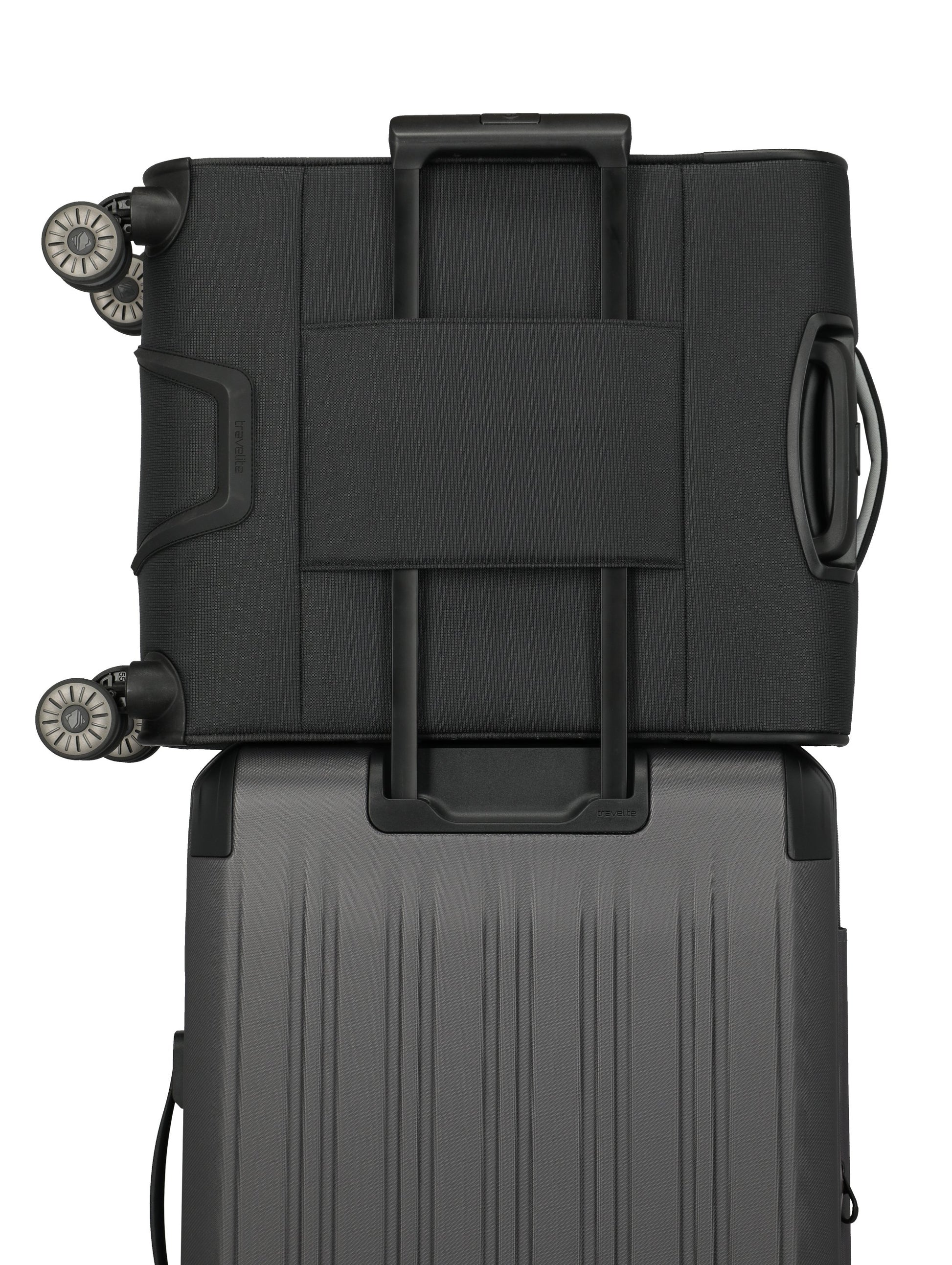 Thanks to the four 360° double wheels, you'll glide smoothly and quietly through airport terminals, narrow aisles, and busy streets. This ensures a relaxed and stress-free journey.