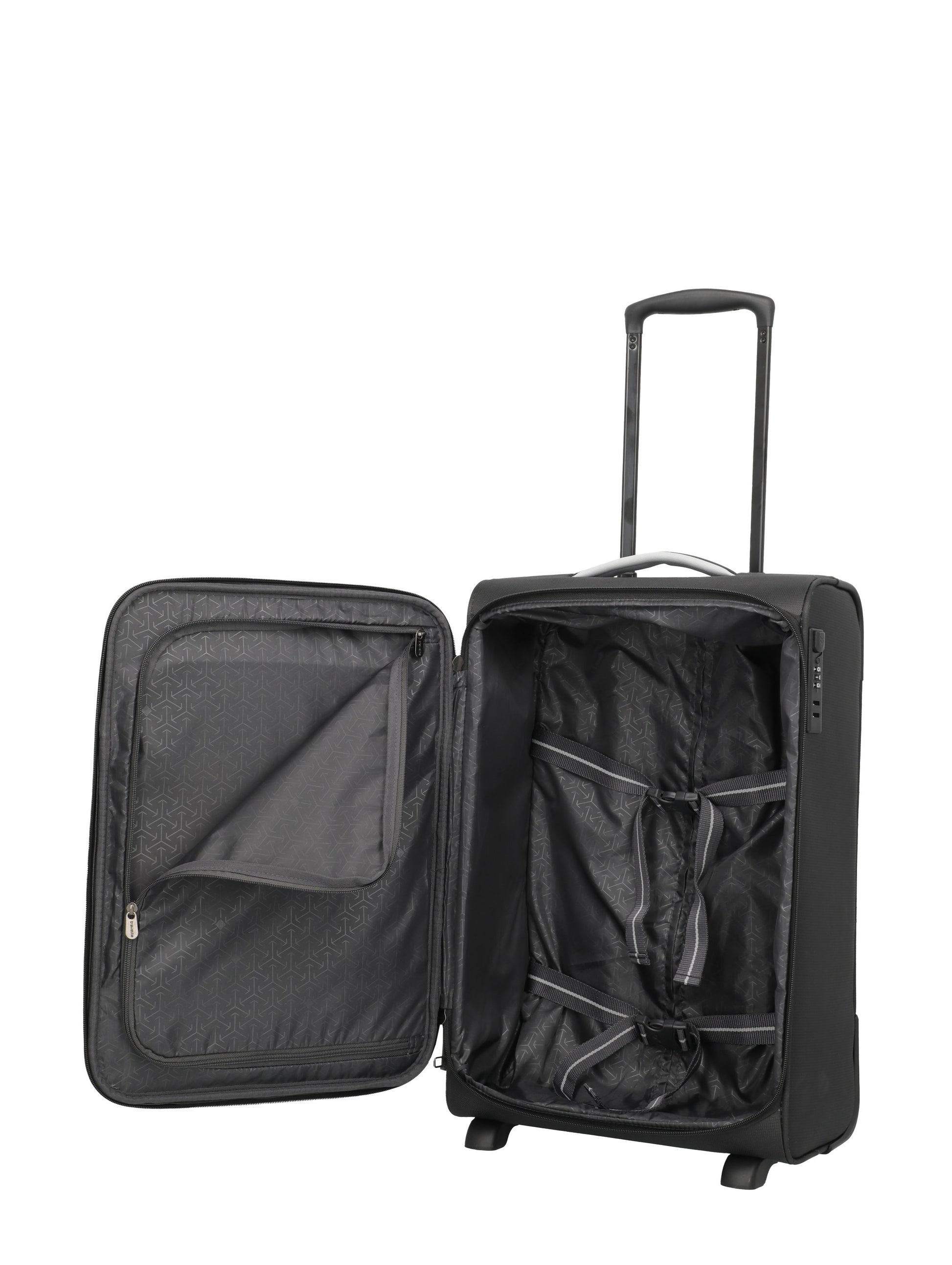 Ultra -light, slim trolley with two running rollers and robust construction - ideal as hand luggage for short trips. Compact main compartment for maximum storage space with minimal volume.