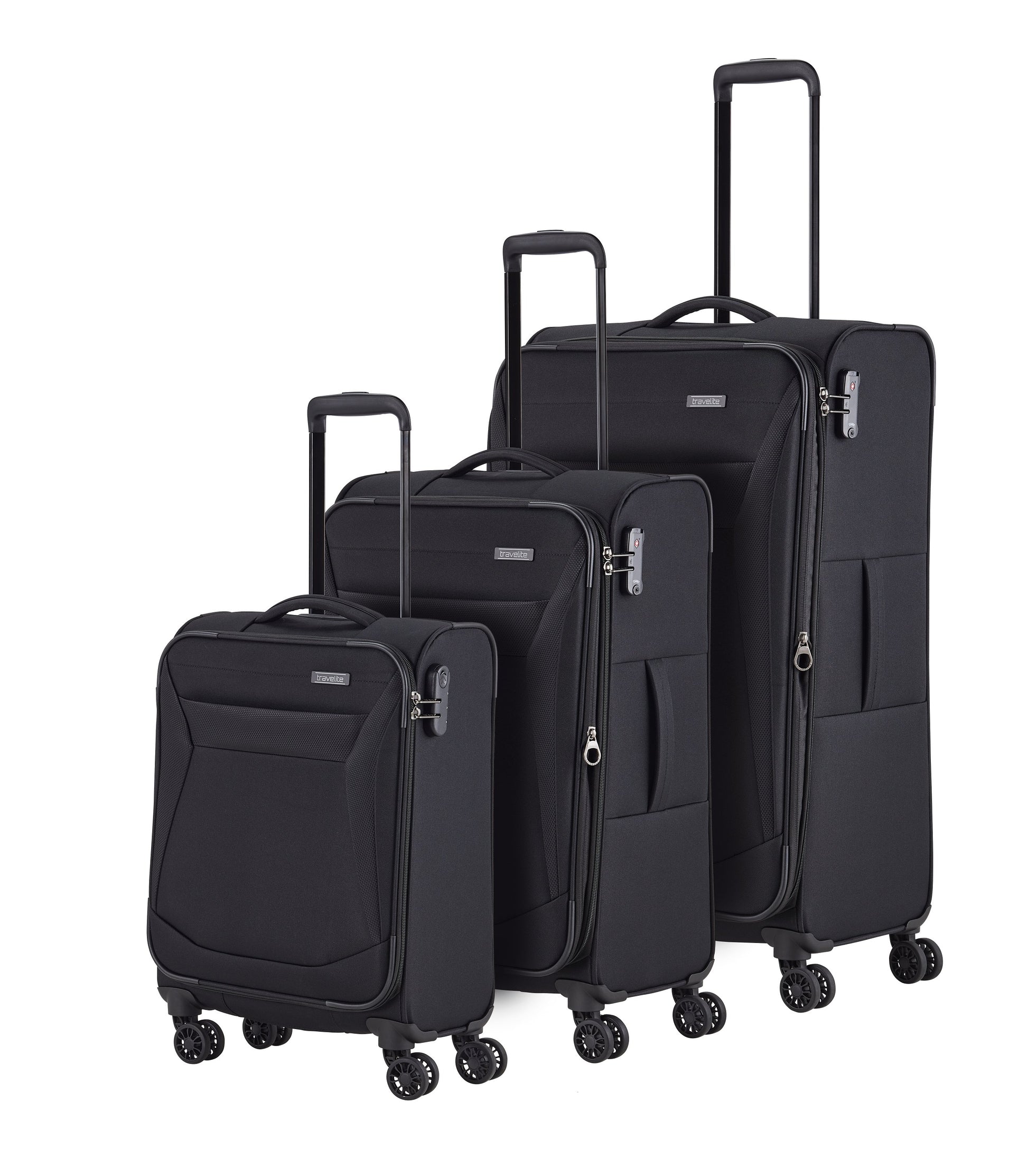 3-part suitcase set with hand luggage (s) and M and L with stretch fold, 4 double rolls and TSA number lock (M+L)-robust, light and perfect organized for every trip. Ideal as a trolley for the plane, weekend trip and long trips.