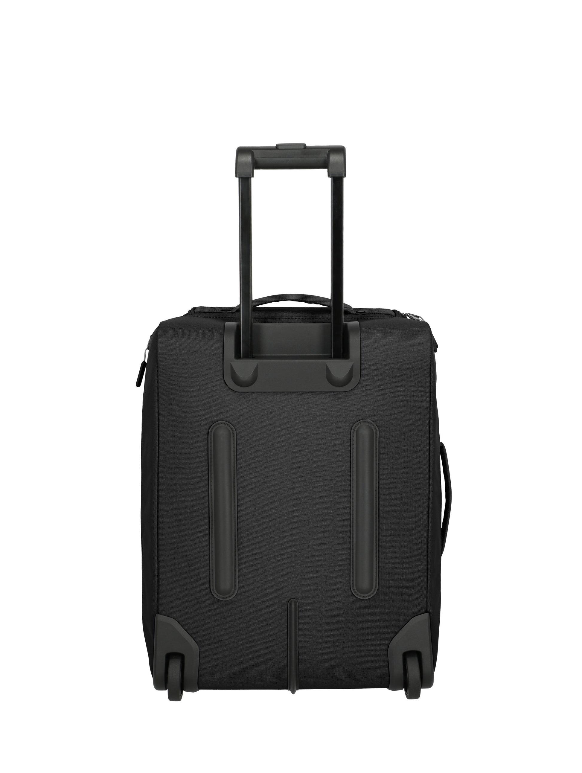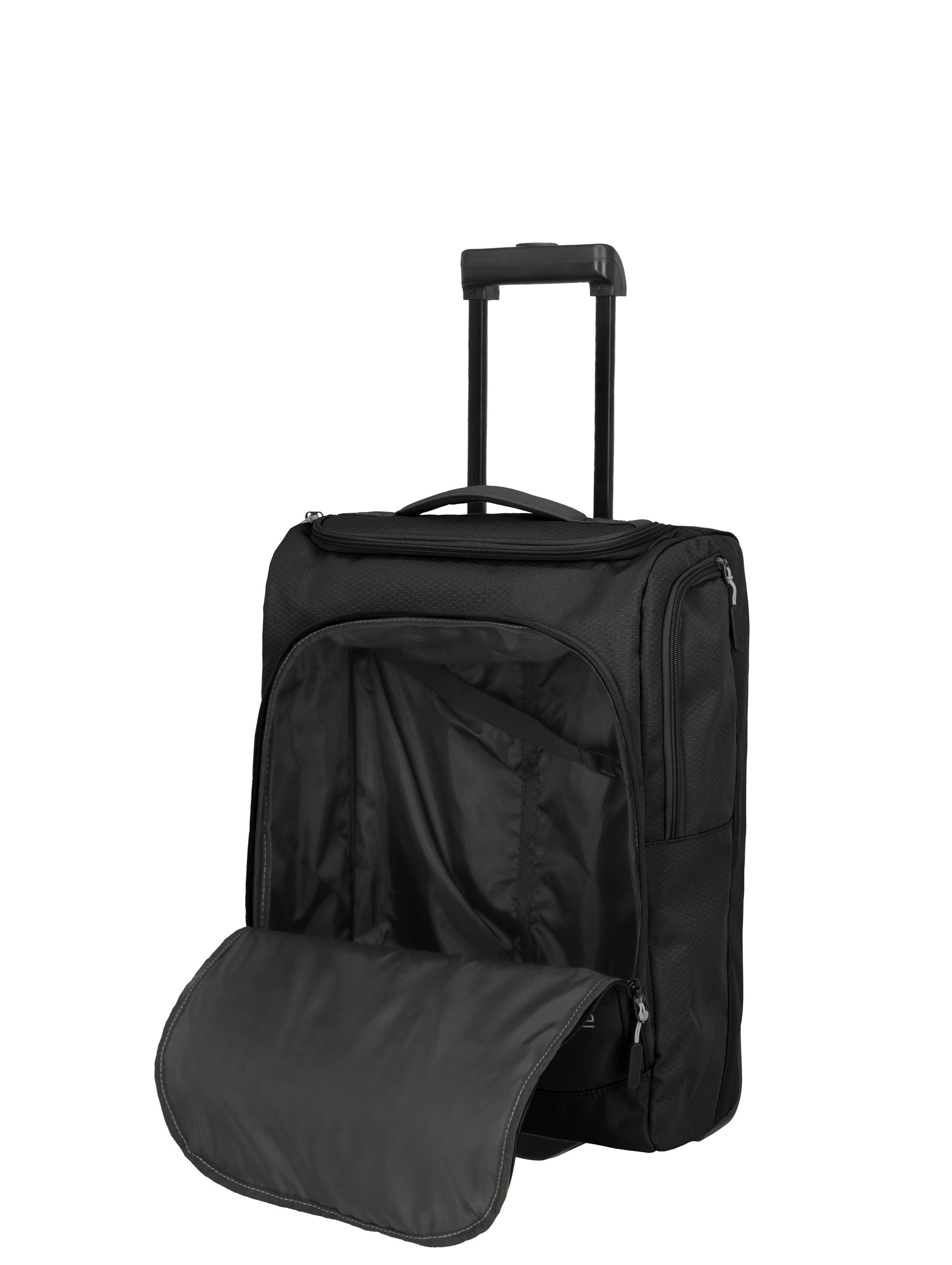 Robust roller travel bag in hand luggage format with a wide-open, lockable main compartment, inner tensioning straps and practical outside compartments. Two smooth -running roles and a double -pulling telescopic handle (57 cm) ensure comfortable handling - perfect for short trips and sport.