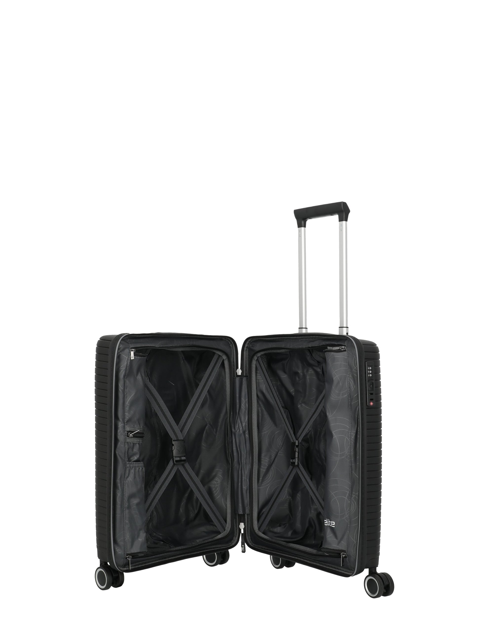 Hard-compatible hard shell trolley with shockproof polypropylene shell, TSA lock, 4 double roles and clever interior layout. Easily maneuverable and in trendy colors - perfect for short trips.