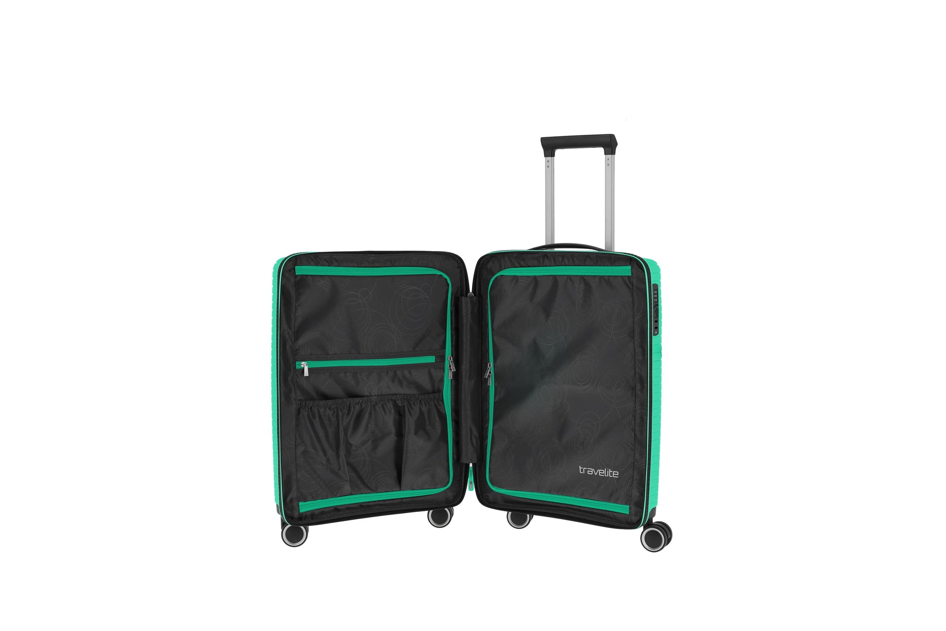 Compact, robust, and colorful: The Travelite ORBITA Trolley S is your smart carry-on suitcase – ideal for weekend trips and business trips, and a clever alternative to traditional travel bags. The shock-resistant polypropylene hard shell reliably protects your luggage, even during hectic travels. An integrated TSA combination lock ensures security and stress-free checks on international routes. Four agile, quiet double wheels and a lockable, lightweight, telescopic handle allow effortless, ergonomic maneuvering on any surface. Inside, a packing divider, elastic cross-straps, and additional compartments keep clothes and essentials neatly in place. Available in fresh colors like lime, turquoise, lavender, or green, this trolley makes a stylish statement. Get the ORBITA Trolley S now and start your next trip feeling relaxed!