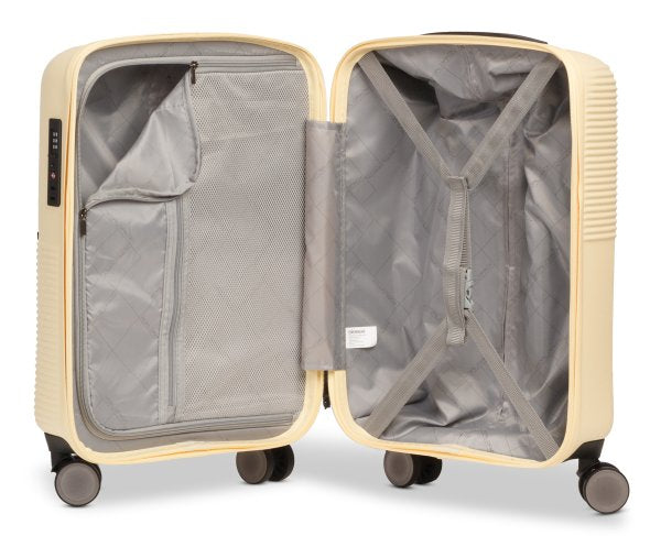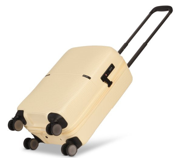 Der kleine Trolley in Pastel Blau mit den Maßen 36x54x22 cm ist besonders leicht (2,6 kg) und bietet dennoch ein Volumen von 33 Litern – ideal für Kurztrips und als Handgepäck. Das Aluminiumgestänge sorgt für Stabilität und ein geringes Eigengewicht, während das moderne Design sofort ins Auge fällt.