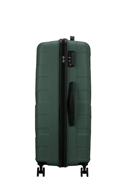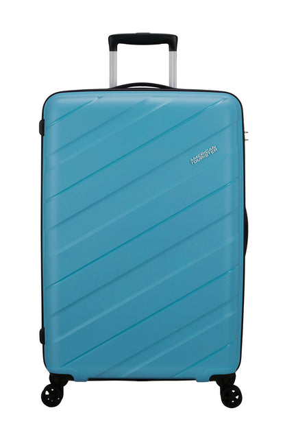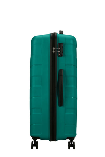 Der AMERICAN TOURISTER Jetdriver L ist der geräumige Reisekoffer für alle, die auf längeren Reisen mehr als nur Handgepäck benötigen. Dieser Trolley überzeugt mit großem Packvolumen und cleverer Innenaufteilung: elastische Packgurte und eine integrierte Packwand halten Kleidung und Accessoires sicher an Ort und Stelle. Vier leichtlaufende Doppelrollen sorgen für 360°-Beweglichkeit und müheloses Gleiten durch Flughäfen und Bahnhöfe. Ein TSA-Kombinationsschloss schützt Ihr Gepäck auf internationalen Reisen, während robuste Tragegriffe oben und seitlich für komfortables Handling beim Verstauen sorgen. Das moderne, zeitlose Design macht den Jetdriver L zum stilvollen Begleiter für Business- und Urlaubsreisen als zuverlässiges Aufgabegepäck. Jetzt den AMERICAN TOURISTER Jetdriver L bestellen und mit Komfort, Sicherheit und Stil reisen!