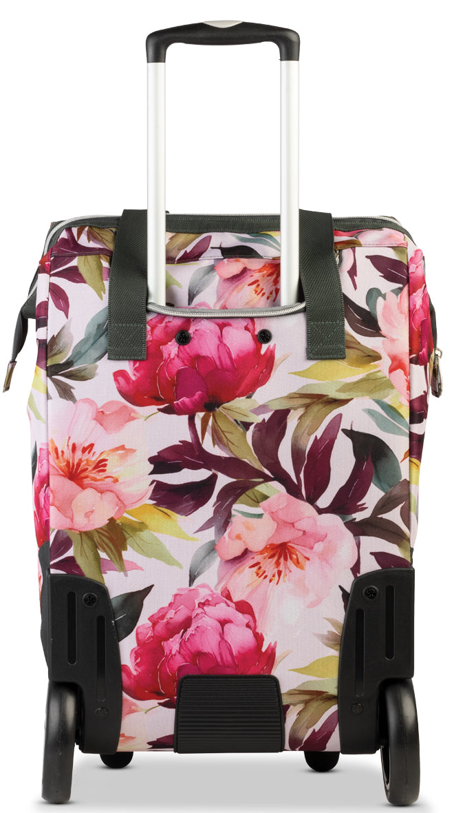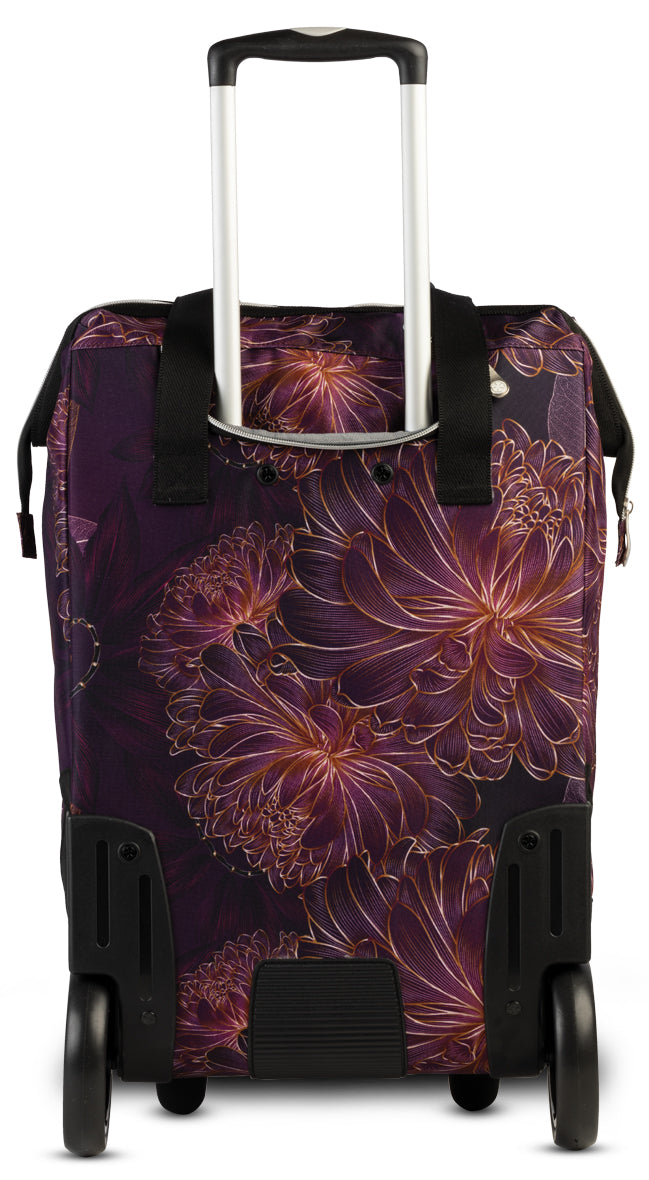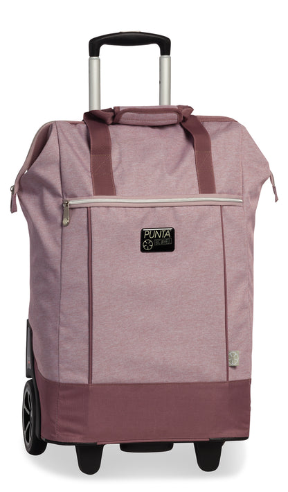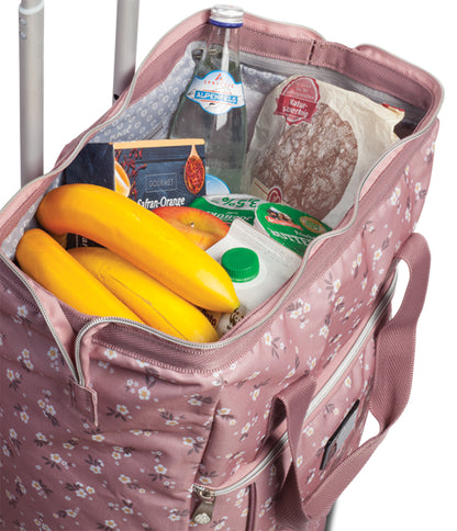 Leiser XL-Rollen-Trolley mit 40 L Volumen, extra breiter Öffnung und stabilem Aluminiumgestell – elegant in Pflaume/Azalee. Perfekt für Einkauf, City und Reisen; ersetzt oft schwere Reisetaschen und kleine Koffer.