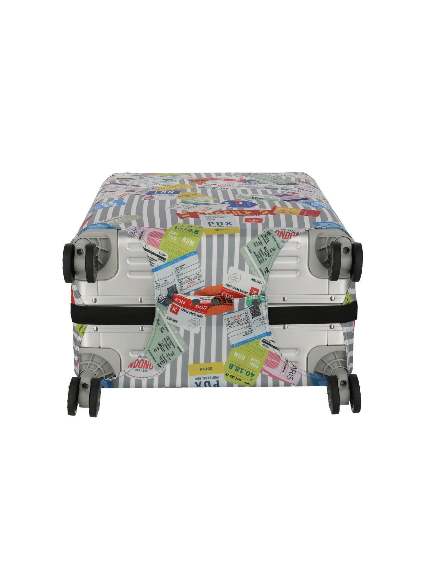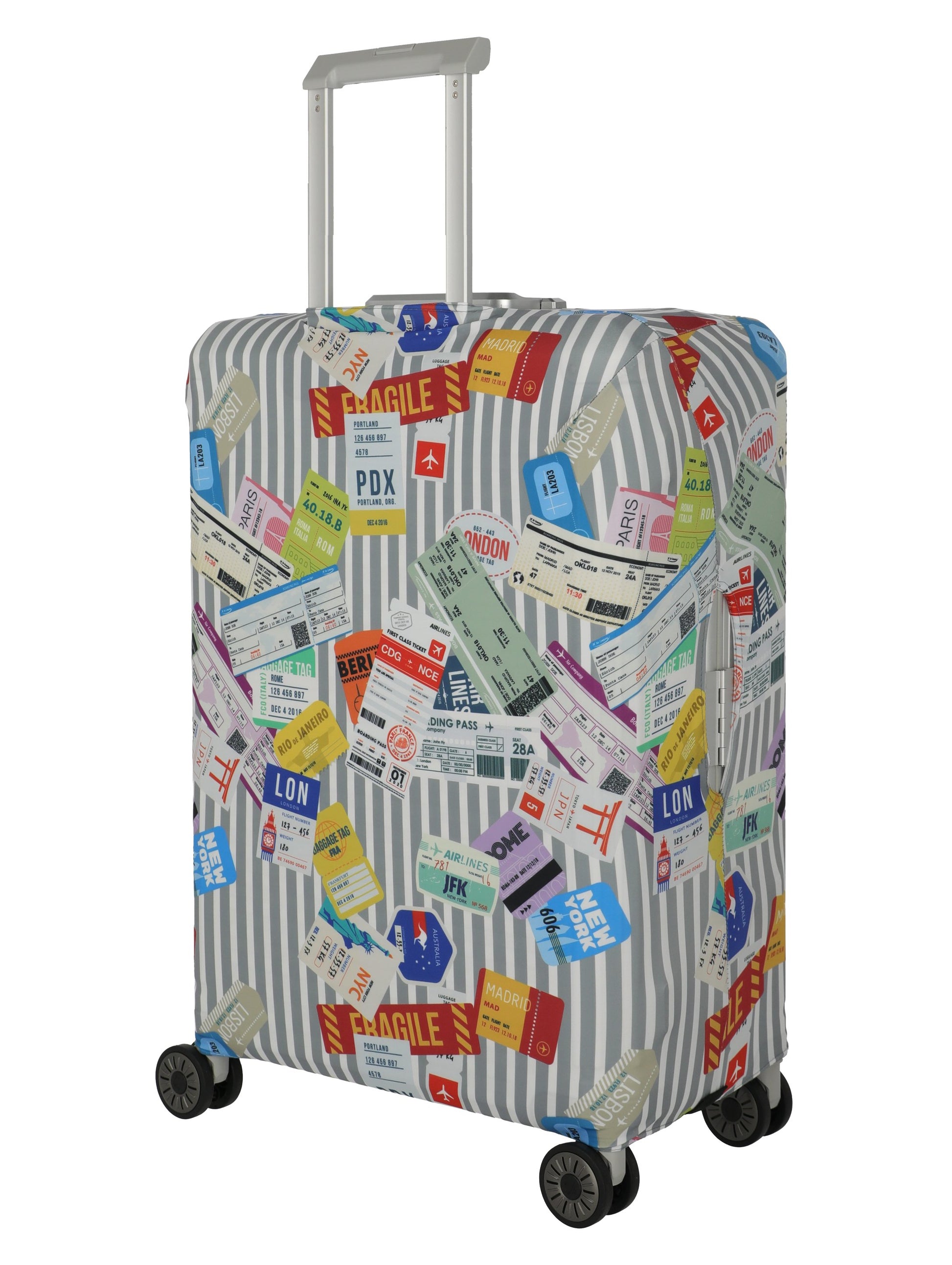 [Elastische, waschbare Kofferhülle L schützt deinen Koffer zuverlässig und macht ihn dank Multi.Color/Tickets-Design am Gepäckband sofort erkennbar. Flexible Passform für große Trolleys, leicht anzubringen und platzsparend zu verstauen – perfekt für jede Reise.]