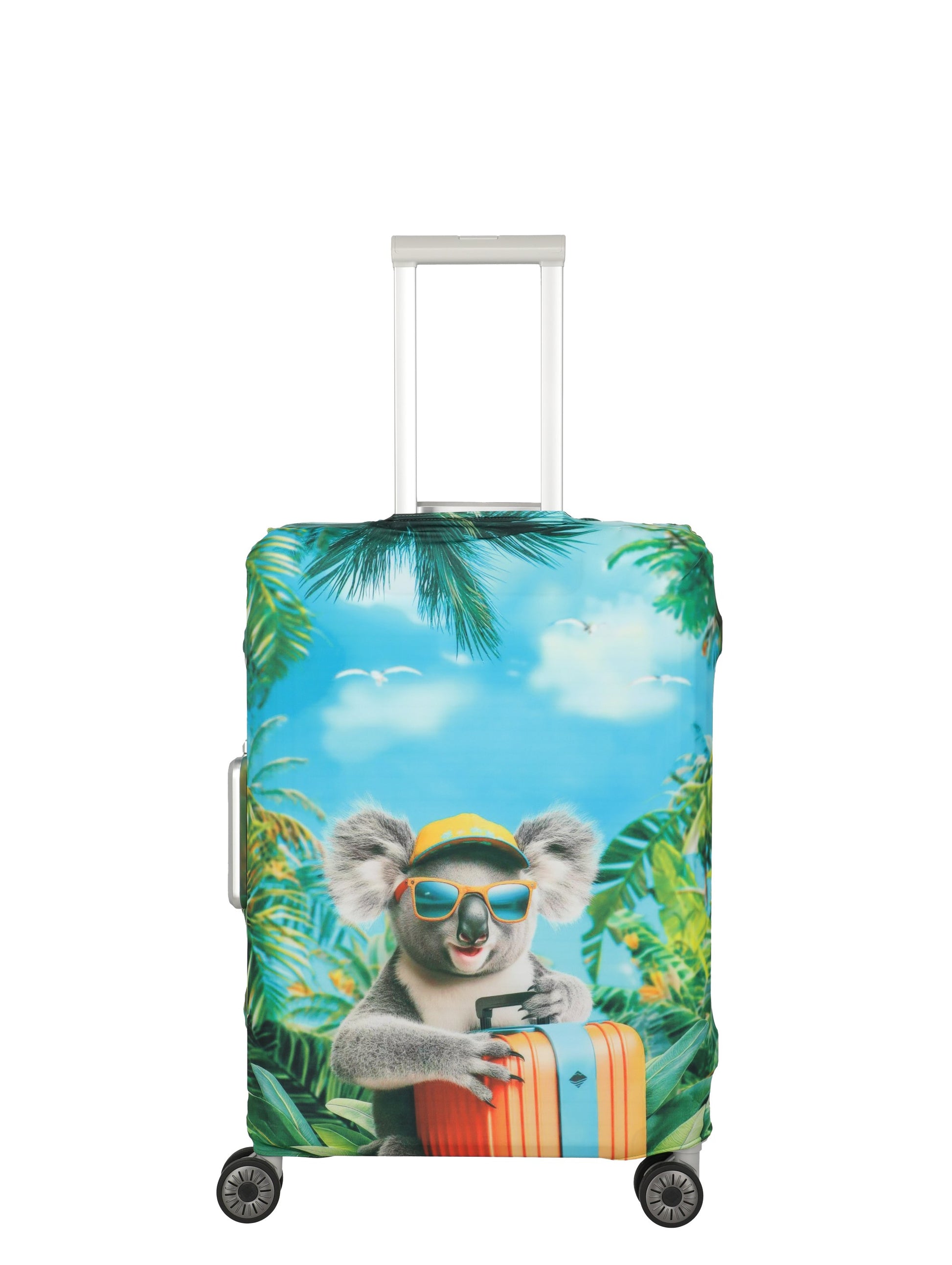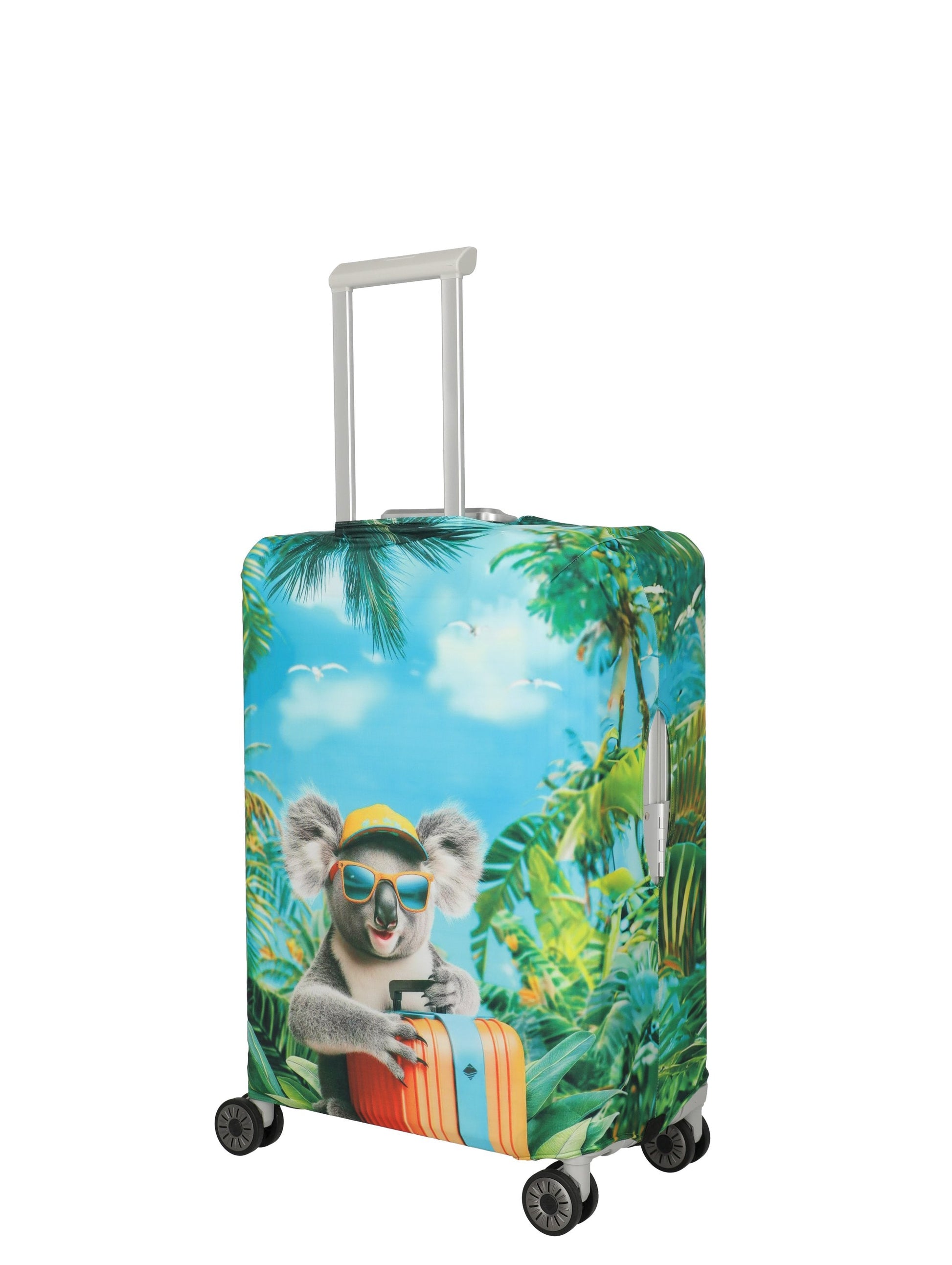 Elastische, waschbare Kofferhülle M im Koala-Design: sicherer Sitz für Trolleys und Koffer, schützt zuverlässig vor Kratzern, Staub und Schmutz. Schnell anzubringen, wiederverwendbar und am Gepäckband sofort erkennbar – ideal fürs Reisen.