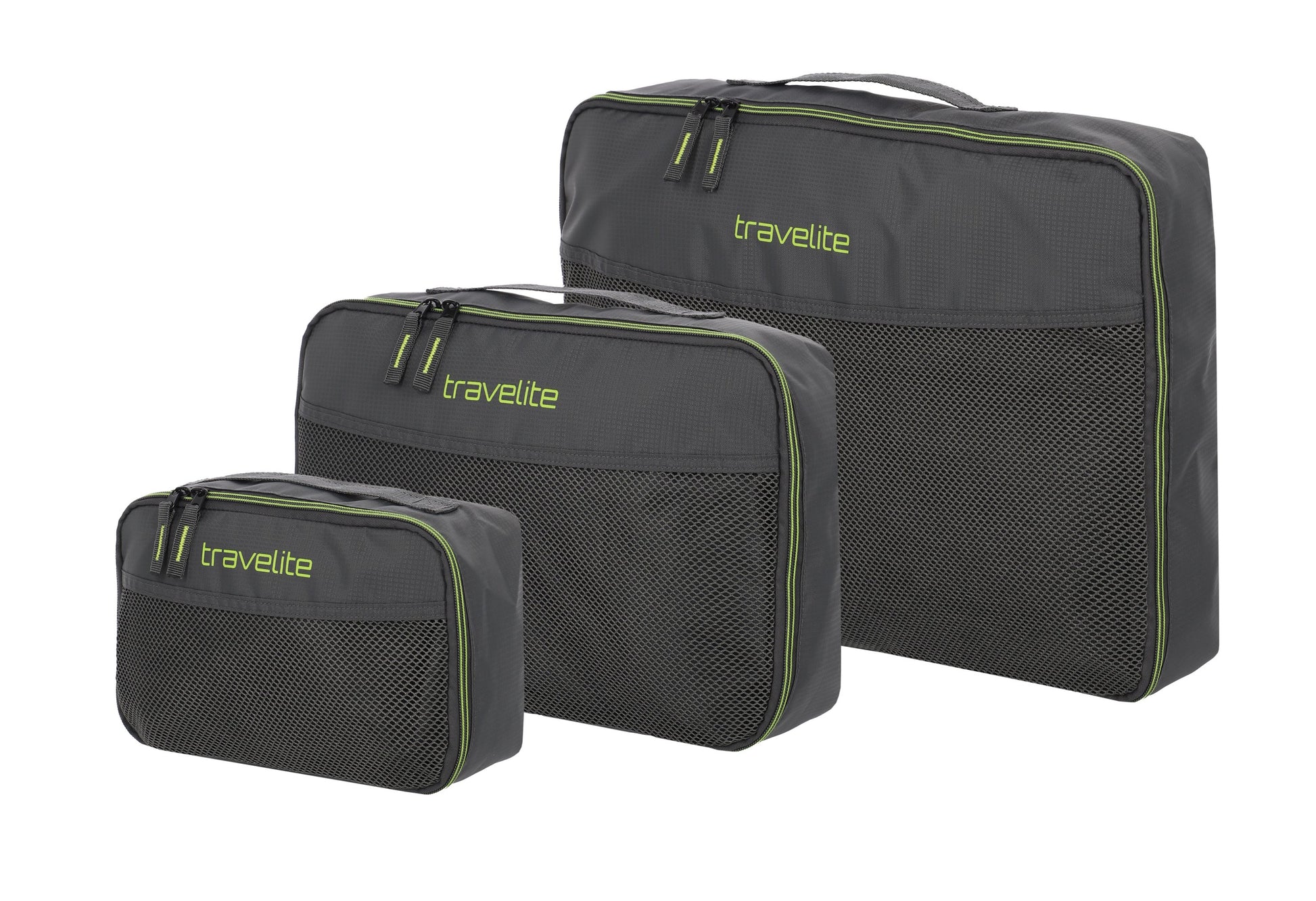 3-teiliges, ultraleichtes Set für maximale Ordnung in Koffer, Trolley, Handgepäck und Reisetasche – abgestimmte Größen nutzen den Stauraum optimal. Für Kleidung, Accessoires und Technik: alles sauber getrennt, schnell griffbereit und stilvoll in Anthrazit.