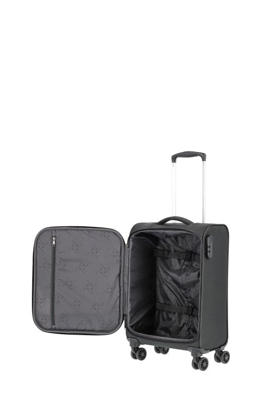 Der CABIN 4w Bordtrolley in Schwarz ist der ideale Begleiter für Kurzreisen und Geschäftsreisen. Mit vier wendigen, leichtlaufenden Rollen bietet er müheloses Manövrieren in alle Richtungen. Das robuste Gehäuse schützt dein Gepäck zuverlässig, während das kompakte Design perfekt als Handgepäck zugelassen ist. Praktische Tragegriffe oben und seitlich sorgen für vielseitigen Transportkomfort. Ein stylischer und funktionaler Trolley für unterwegs.