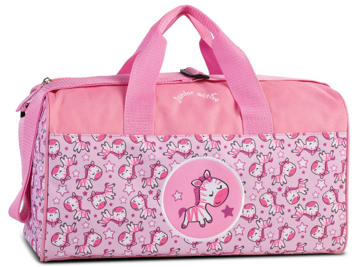 Die Fabrizio Kindersporttasche verfügt über ein großes RV-Hauptfach, zwei Tragehenkel und einen verstellbaren Umhängegurt. Sie ist robust, geräumig und besonders für Kinder geeignet.