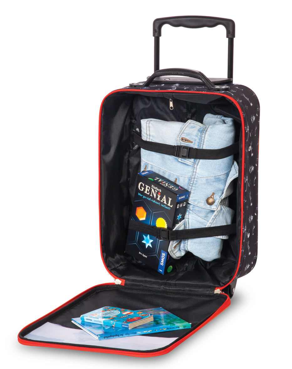 Leichter Kindertrolley mit viel Stauraum, robusten Rollen und ausziehbarem Griff – ideal für Reisen, Wochenendtrips und als Handgepäck-Option. Der perfekte Kinderkoffer für kleine Globetrotter: kompakt, stabil und kinderfreundlich im Design.