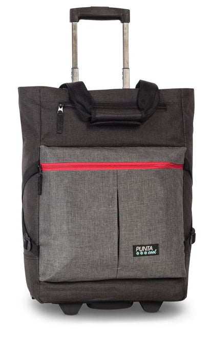 Der Punta Wheel Cool mit Kühlfunktion ist Ihr cleverer Begleiter für Stadtbummel, Ausflüge und Reisen – ein vielseitiger Trolley, der Frische, Ordnung und Komfort verbindet. Das isolierte Frontfach hält Getränke und Snacks länger kühl – perfekt für Shoppingtouren, Familien-Picknicks oder den Weg zum Strand. Im geräumigen Hauptfach verstauen Sie Einkäufe oder Reiseutensilien, während die äußere Zusatztasche schnellen Zugriff auf Schlüssel, Smartphone oder Tickets bietet. Leichtlaufende Rollen und ein robuster Bordsteinschutz ermöglichen müheloses Ziehen über Bordkanten und unebene Wege – ganz ohne schweres Schleppen. Die solide Punta-Verarbeitung macht ihn zum zuverlässigen Reisepartner: als praktische Reisetasche, Ergänzung zum Koffer oder Teil Ihres Handgepäck-Setups auf kurzen Trips. Jetzt bestellen und mit dem Punta Wheel Cool entspannt und gut organisiert unterwegs sein!