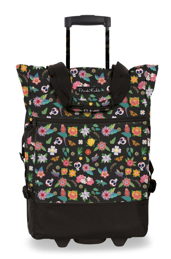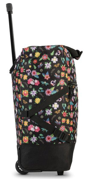 Stilvoll reisen: 33 L Trolley mit stabilem Gestänge, Kompressionsriemen, Bordsteinschutz und Außentasche – als Handgepäck ideal. Frida-Kahlo-Design in Schwarz für ein markantes Statement auf jeder Reise.