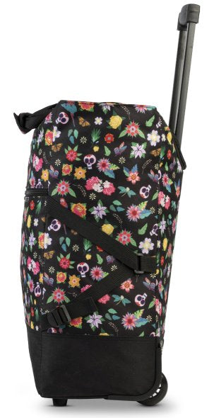 Die Punta Wheel Frida Kahlo in Schwarz ist dein modisches und einzigartiges Accessoire, das jeden Einkauf leichter macht. Mit einem stabilen Trolley-Gestänge, Kompressionsriemen und Bordsteinschutz kombiniert sie Komfort und Langlebigkeit. Die praktische Außentasche mit Reißverschluss bietet schnellen Zugriff auf wichtige Kleinigkeiten. Mit 33 Litern Fassungsvermögen eignet sich die Punta Wheel Frida Kahlo perfekt als stilvolles Bordgepäck für Reisen und den Alltag.