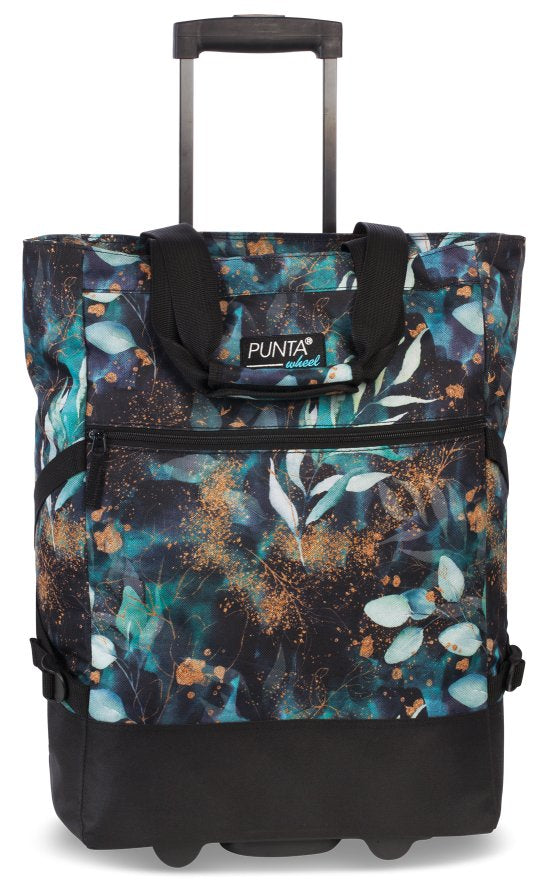 Der Punta Wheel Print Shopping Roller Punta verbindet bewährte Qualität mit modischem Design. Erhältlich in vielen attraktiven Farben und Prints, ist er das perfekte Accessoire, das deinen Einkauf erleichtert und stilvoll begleitet. Ausgestattet mit stabilem Trolley-Gestänge, Kompressionsriemen und Bordsteinschutz bietet er Komfort und Langlebigkeit. Die praktische Außentasche mit Reißverschluss sorgt für schnellen Zugriff auf Kleinigkeiten. Mit einem Fassungsvermögen von 33 Litern ist er ideal als handliches Bordgepäck.