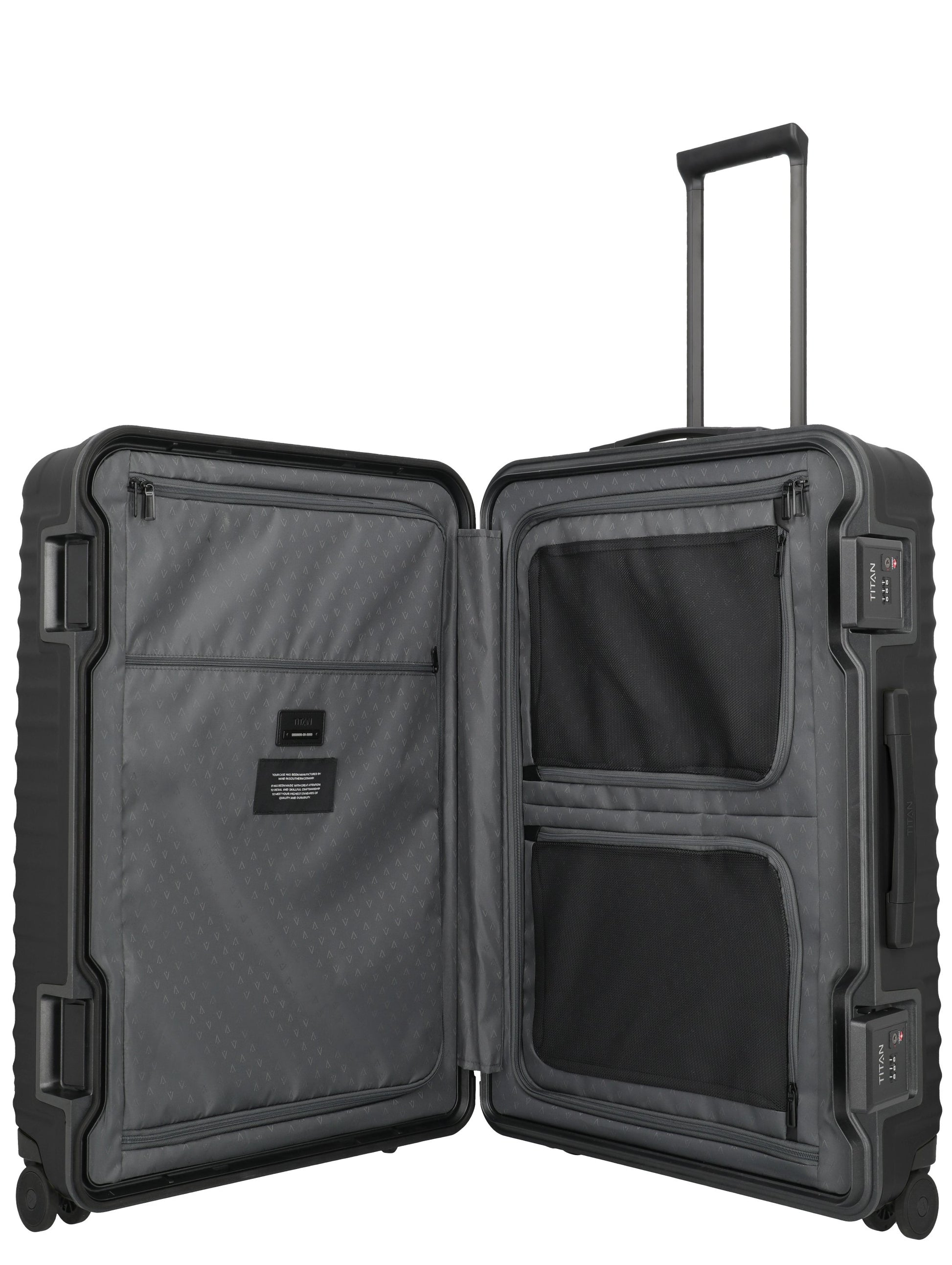 Viel Stauraum, 4-Rollen-Komfort und robustes Design: Der Titan OVERSEAS 4w Trolley L ist der ideale Koffer für längere Reisen und ergänzt Ihr Handgepäck perfekt. Für müheloses Reisen mit Stil und Übersicht.