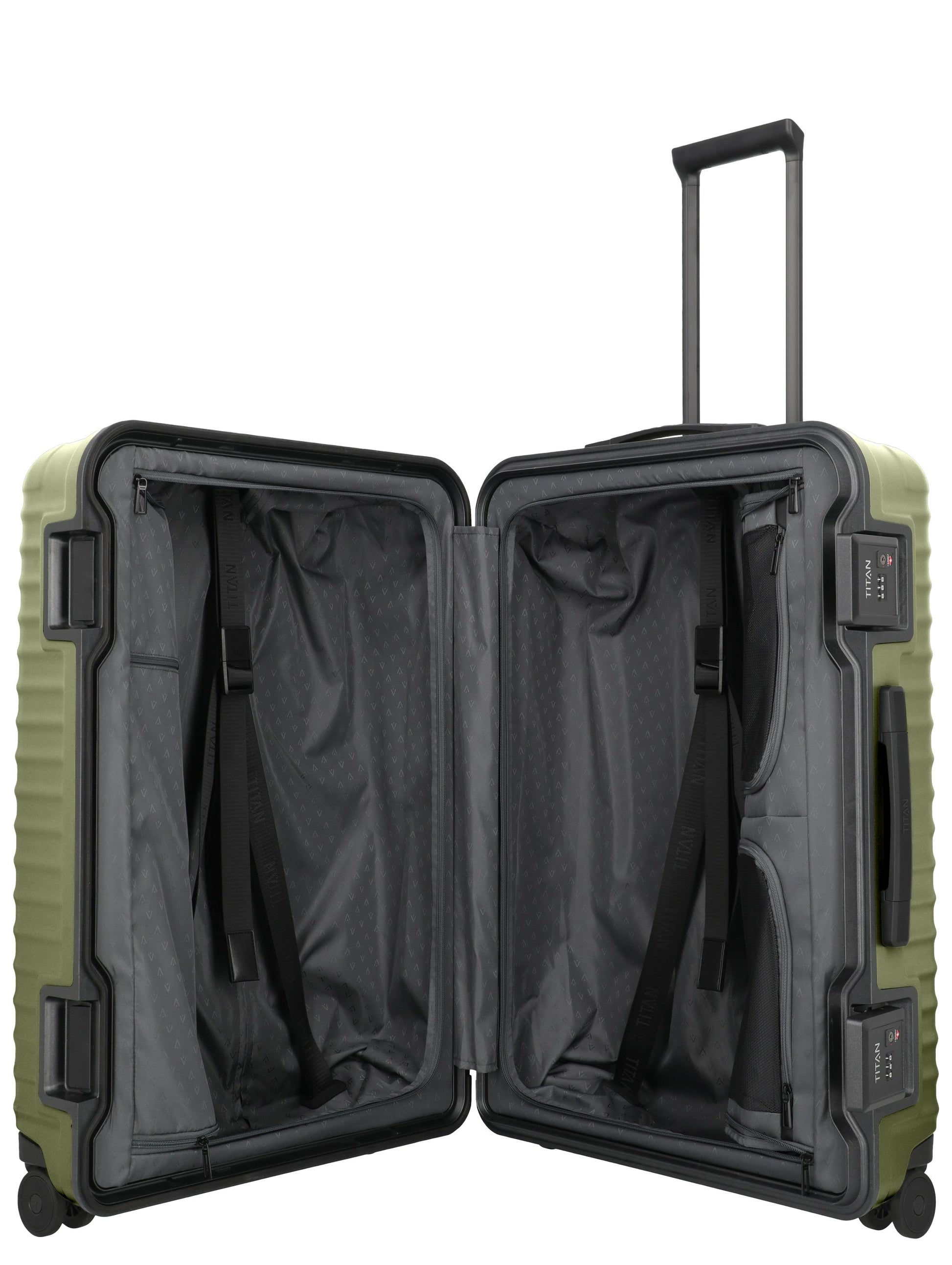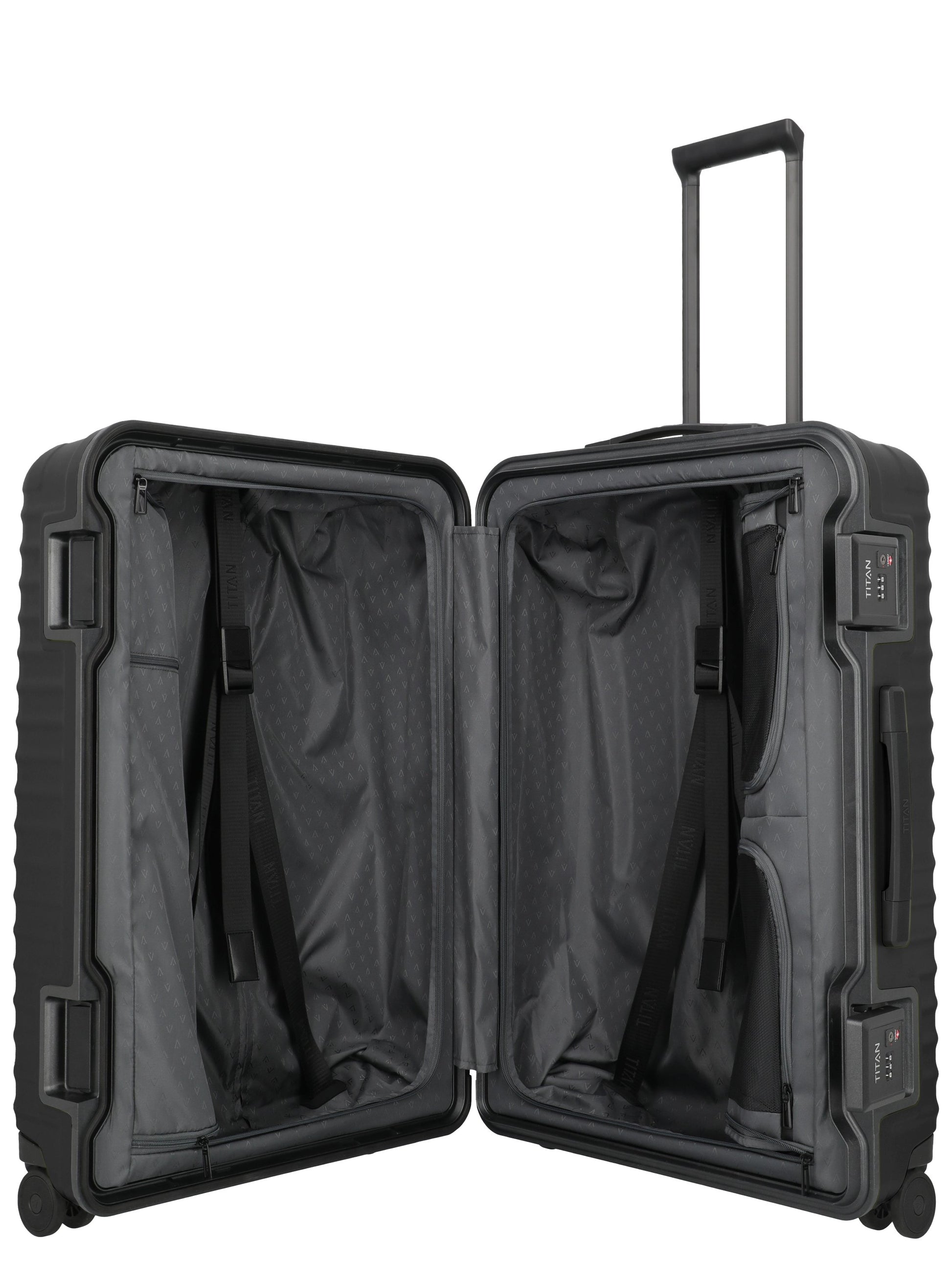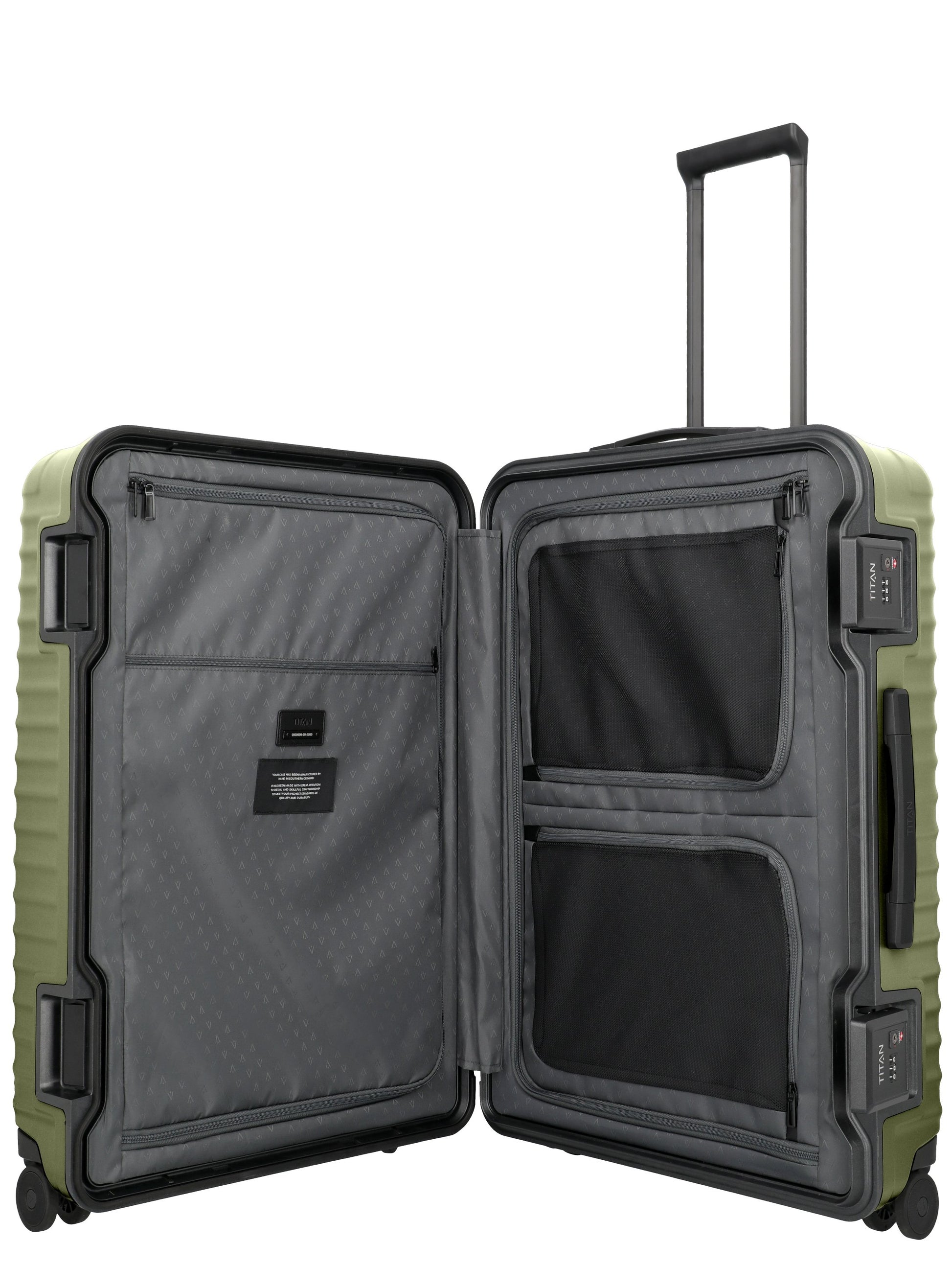 Der OVERSEAS L ist ein Langstreckenprofi, gemacht für viel Gepäck. Herzstück des Trolleys ist seine innovative, von TITAN entwickelte Rahmenkonstruktion, die Ihrem Gepäck maximale Stabilität und zuverlässigen Schutz bietet – selbst bei höchsten Belastungen. Zwei seitlich platzierte TSA-Schlösser sichern den Inhalt zuverlässig und erleichtern das Handling. Die widerstandsfähige Polycarbonat-Schale trotzt Kratzern und Stößen, während der durchdachte Innenraum Ordnung für alles Wesentliche schafft. Selbst voll beladen gleitet der Koffer ruhig und mühelos auf besonders großen, leichtgängigen Doppelrollen. Maximale Kapazität, erstklassiger Komfort und grenzenlose Sicherheit – für alle, die Großes vorhaben.