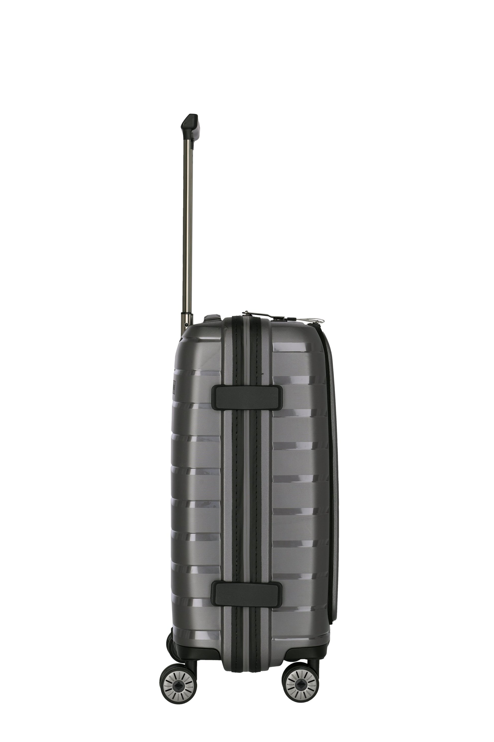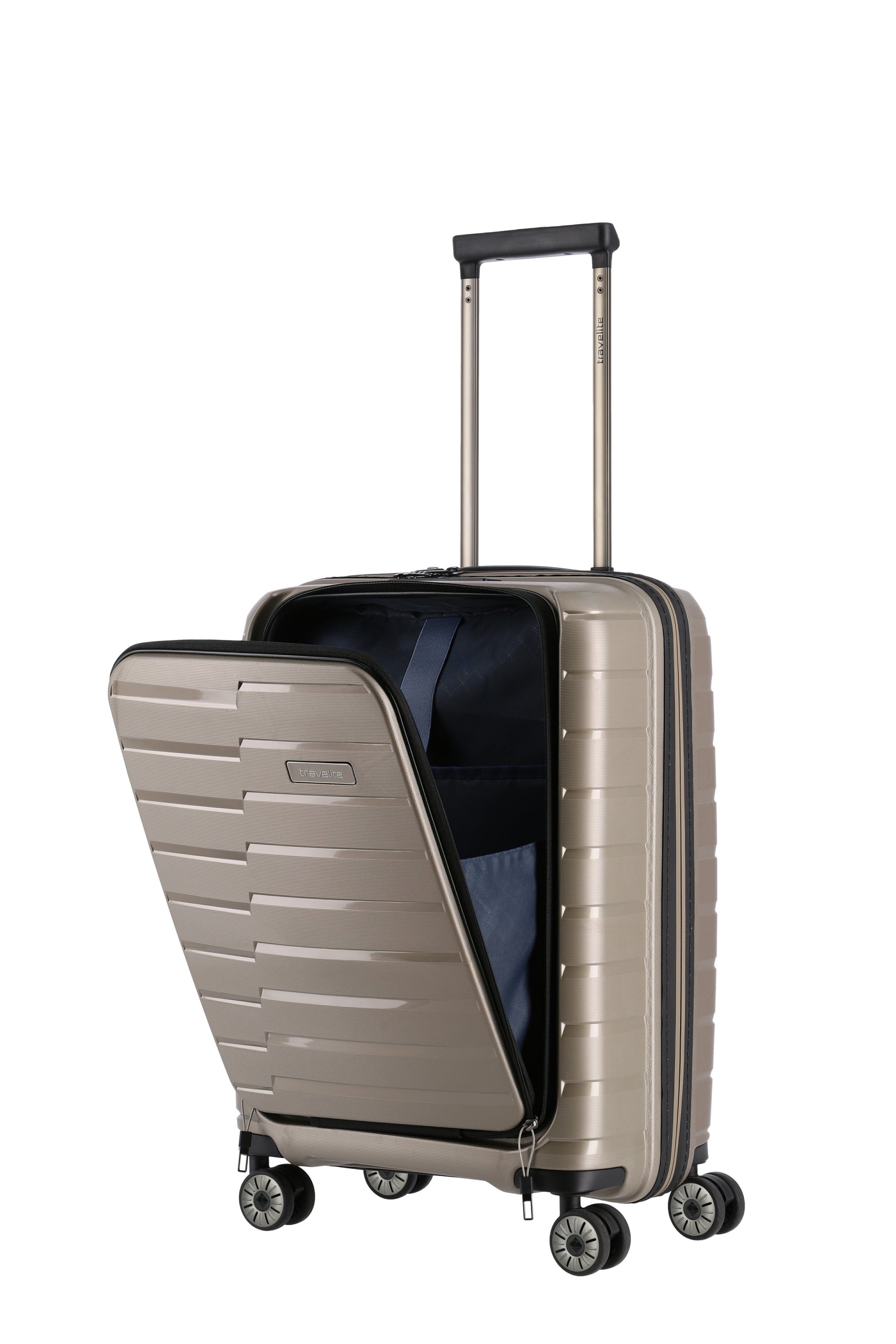 Der Travelite AIR BASE Trolley ist Ihr strapazierfähiger Begleiter für jede Reise – vom Städtetrip bis zur Business-Tour. Die Hartschale aus robustem Polypropylen schützt Ihr Gepäck zuverlässig und bleibt dabei angenehm leicht. Die markante, strukturierte Oberfläche mit matten und glänzenden Akzenten sorgt für einen modernen Look auf jedem Gepäckband. Mehr Flexibilität unterwegs bietet die integrierte Erweiterungsfunktion: Bei Bedarf vergrößern Sie das Packvolumen im Handumdrehen. Ein versenktes TSA-Zahlenschloss sichert den Inhalt auf internationalen Reisen. Für maximalen Komfort sorgen vier wendige Doppelrollen und ein stabiles, arretierbares Teleskopgestänge. Innen überzeugt der Koffer mit hochwertigem Futter, elastischen Packgurten sowie beidseitigen Trennwänden mit zusätzlichen Reißverschlusstaschen für perfekte Ordnung. Ideal als Trolley fürs Handgepäck (je nach Größe/Fluglinie) oder als großzügiger Koffer für längere Reisen. Reisen ohne Kompromisse – jetzt den Travelite AIR BASE Trolley sichern und mit Leichtigkeit durchstarten!