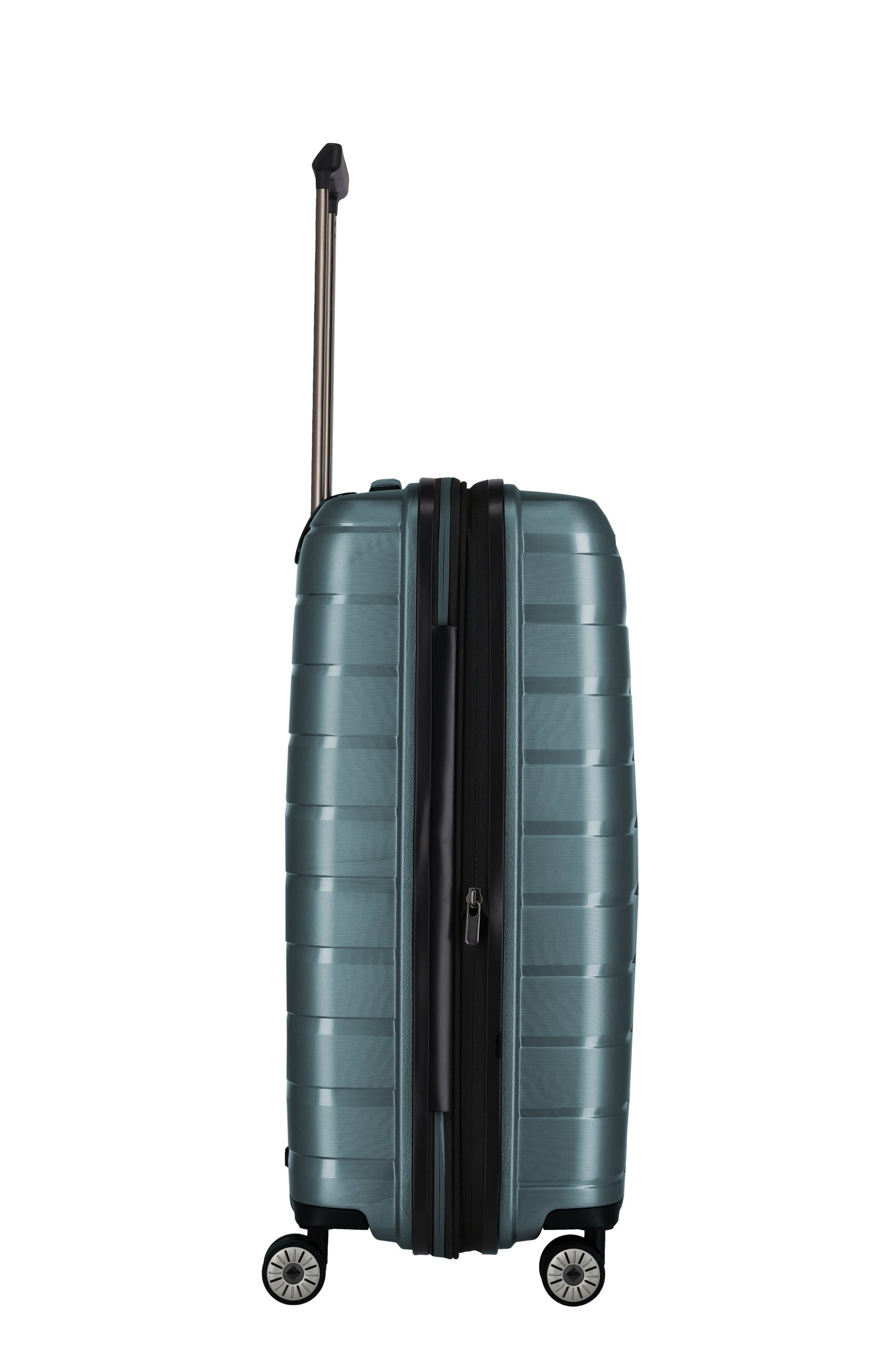 Der Travelite AIR BASE Trolley ist Ihr strapazierfähiger Begleiter für jede Reise – vom Städtetrip bis zur Business-Tour. Die Hartschale aus robustem Polypropylen schützt Ihr Gepäck zuverlässig und bleibt dabei angenehm leicht. Die markante, strukturierte Oberfläche mit matten und glänzenden Akzenten sorgt für einen modernen Look auf jedem Gepäckband. Mehr Flexibilität unterwegs bietet die integrierte Erweiterungsfunktion: Bei Bedarf vergrößern Sie das Packvolumen im Handumdrehen. Ein versenktes TSA-Zahlenschloss sichert den Inhalt auf internationalen Reisen. Für maximalen Komfort sorgen vier wendige Doppelrollen und ein stabiles, arretierbares Teleskopgestänge. Innen überzeugt der Koffer mit hochwertigem Futter, elastischen Packgurten sowie beidseitigen Trennwänden mit zusätzlichen Reißverschlusstaschen für perfekte Ordnung. Ideal als Trolley fürs Handgepäck (je nach Größe/Fluglinie) oder als großzügiger Koffer für längere Reisen. Reisen ohne Kompromisse – jetzt den Travelite AIR BASE Trolley sichern und mit Leichtigkeit durchstarten!