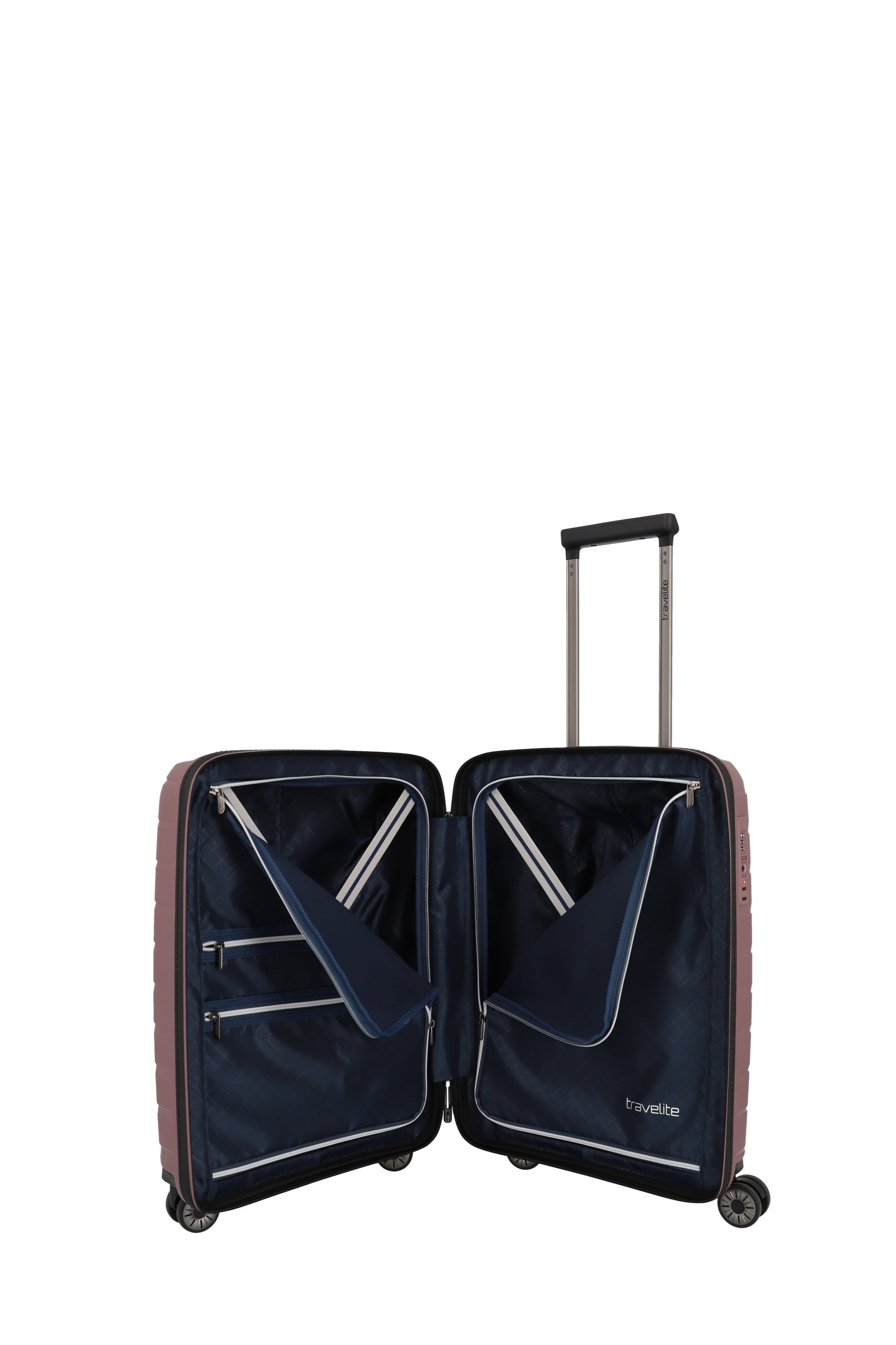 Der Travelite AIR BASE Trolley S ist dein leichter, robuster Begleiter für unterwegs – perfekt als Handgepäck für Kurztrips, City-Breaks und Business-Reisen. Die widerstandsfähige Hartschale schützt dein Gepäck zuverlässig, während das geringe Gewicht entspanntes Reisen ermöglicht. Leise, wendige Doppelrollen und ein arretierbares Teleskopgestänge sorgen für maximalen Komfort auf jedem Untergrund. Ein integriertes TSA-Zahlenschloss sichert deinen Koffer auf Flugreisen und erleichtert Sicherheitskontrollen. Die durchdachte Innenaufteilung mit Packgurten und Trennfach hält deine Reisetasche ordentlich und alles griffbereit. Kompakte Abmessungen sind bei vielen Airlines als Handgepäck geeignet – ideal für spontane Auszeiten und Pendelflüge (bitte die Bestimmungen deiner Airline prüfen). Sichere dir jetzt den Travelite AIR BASE Trolley S und starte smart, leicht und stilvoll in deine nächste Reise!