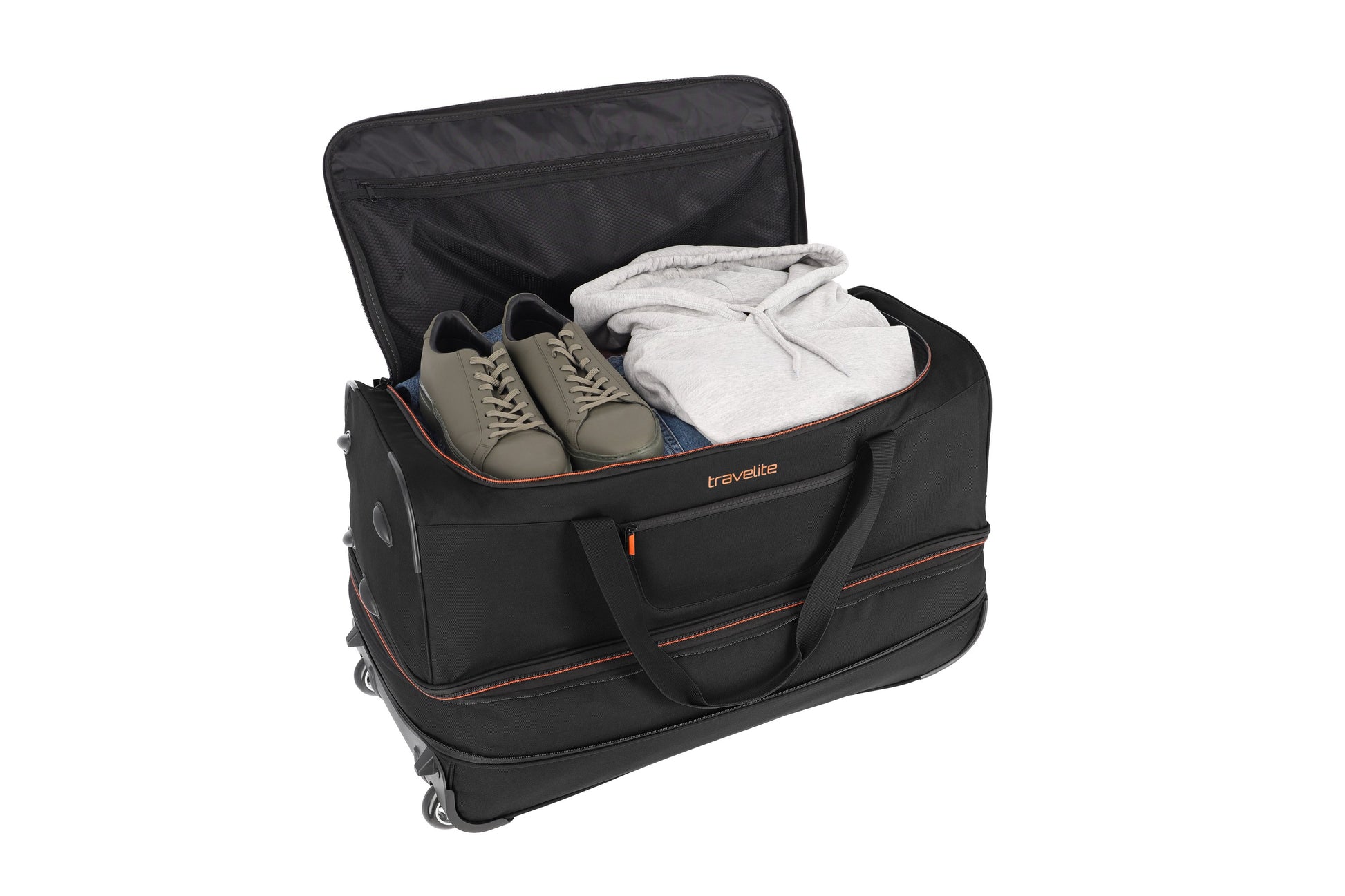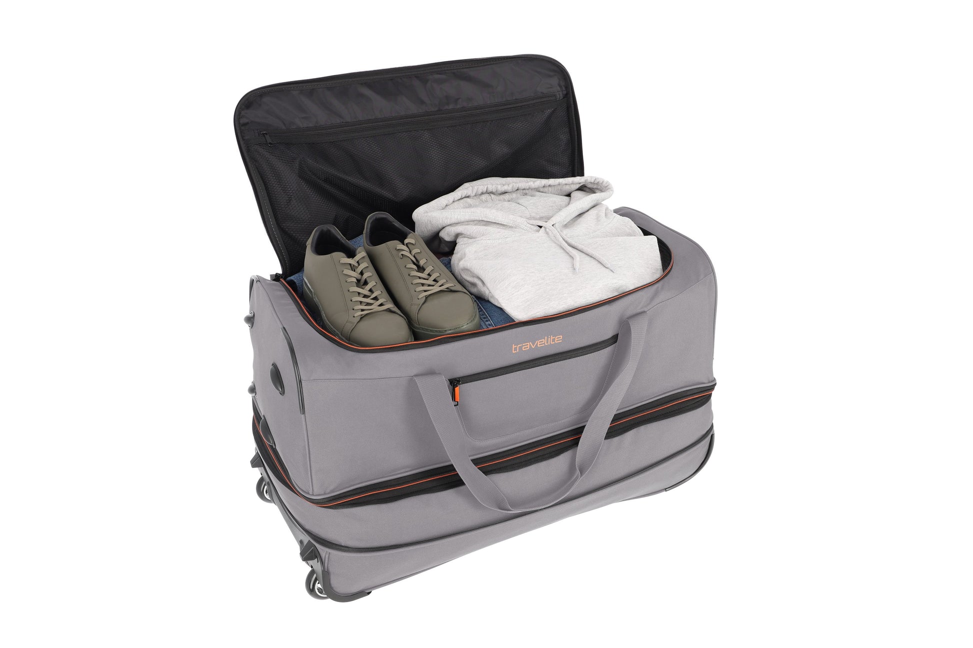 Robuste, wasserabweisende Rollenreisetasche mit großem, weit öffnendem Hauptfach, Vortasche und Packgurten – stabil, wendig und bequem dank Teleskopgestänge und Inliner-Rollen. Perfekt für Reisen, bei denen du mehr Stauraum als im Handgepäck brauchst, ohne auf Trolley-Komfort zu verzichten.