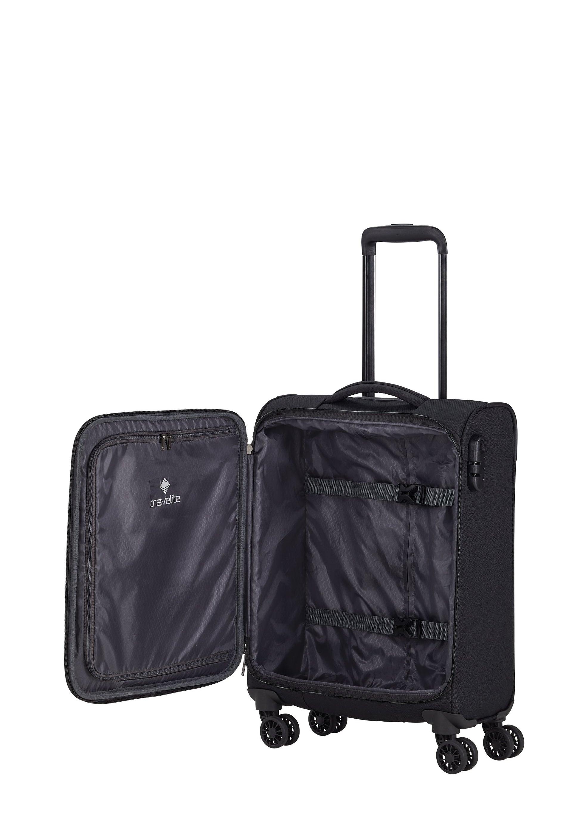 Der Travelite CHIOS Trolley S ist dein leichter 55-cm-Begleiter für Handgepäck-Reisen, Citytrips und Business-Touren. Mit 39 x 55 x 20 cm, nur 2,4 kg Gewicht und 34 Litern Volumen passt er bei vielen Airlines als Bordgepäck und spart Zeit am Gepäckband. Die durchdachte Innenaufteilung mit elastischen Packgurten und separaten Fächern sorgt für Ordnung; geräumige Fronttaschen halten Reisedokumente und Essentials schnell griffbereit. Strapazierfähiges Material, verstärkte Kanten, ein arretierbares Teleskopgestänge aus Leichtmetall und ein praktischer Bodengriff machen den Koffer robust und komfortabel im Handling. Vier laufruhige Doppelrollen bieten leises, wendiges Gleiten – ideal auf Flughäfen, Bahnhöfen und unterwegs. Hol dir den CHIOS Trolley S und reise smart, organisiert und entspannt.