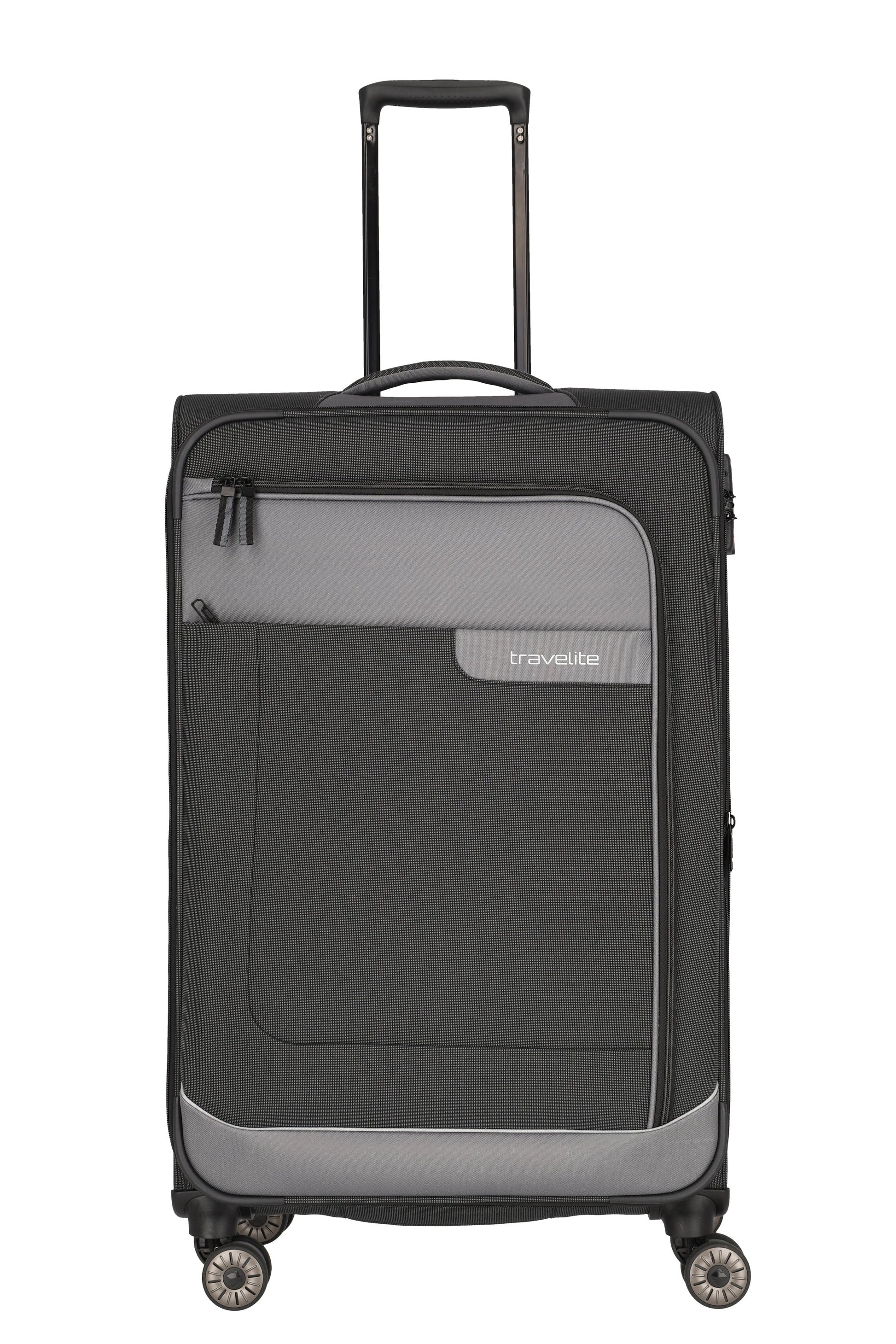 Erweiterbarer L-Trolley mit leichtgängigen Doppelrollen, TSA-Schloss und sicherem Packsystem – für mehr Volumen und müheloses Reisen. Mit Ober-/Seitengriffen und Aufsteckfunktion ideal als Teil deines Koffer-Sets mit Handgepäck.
