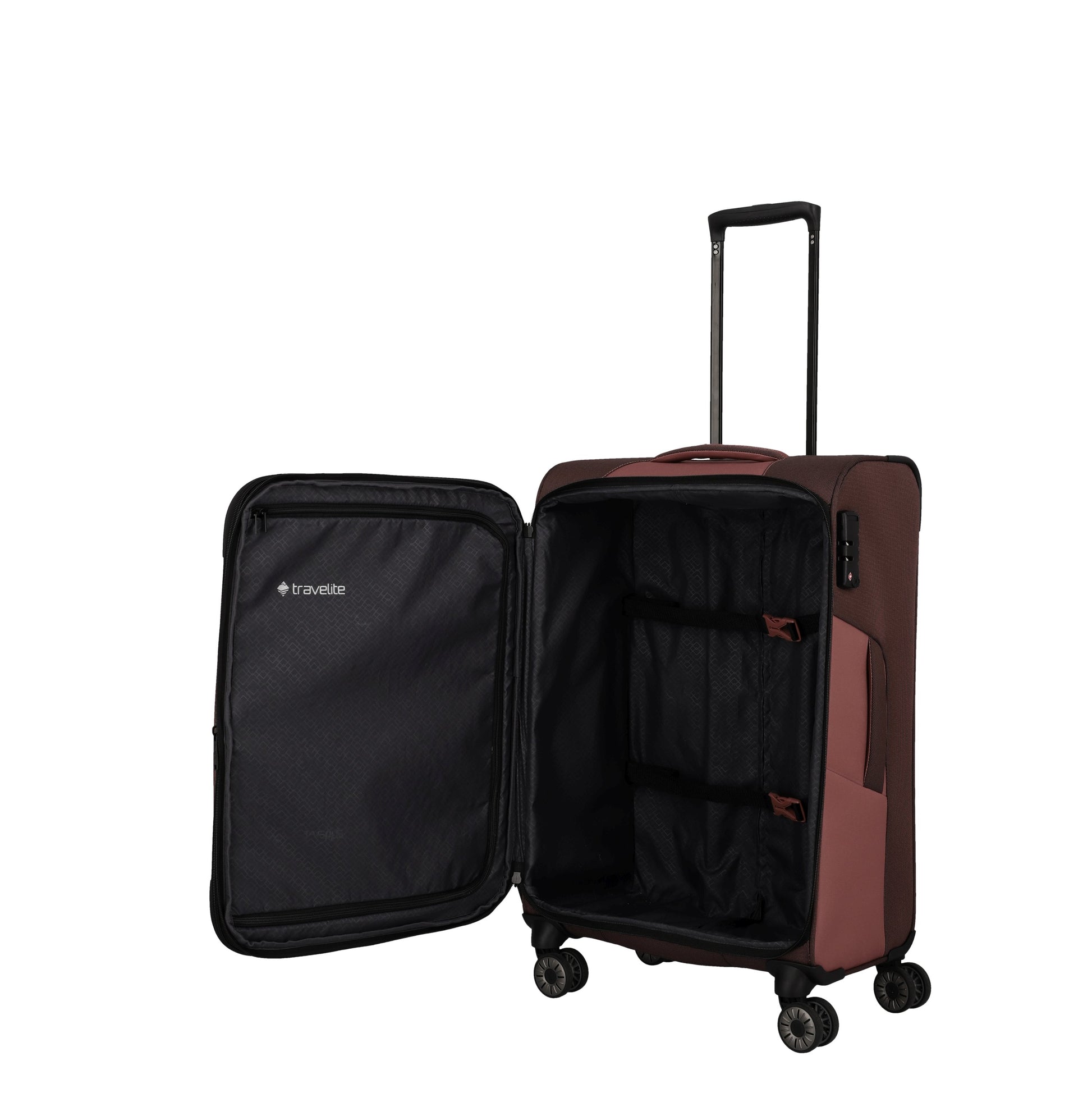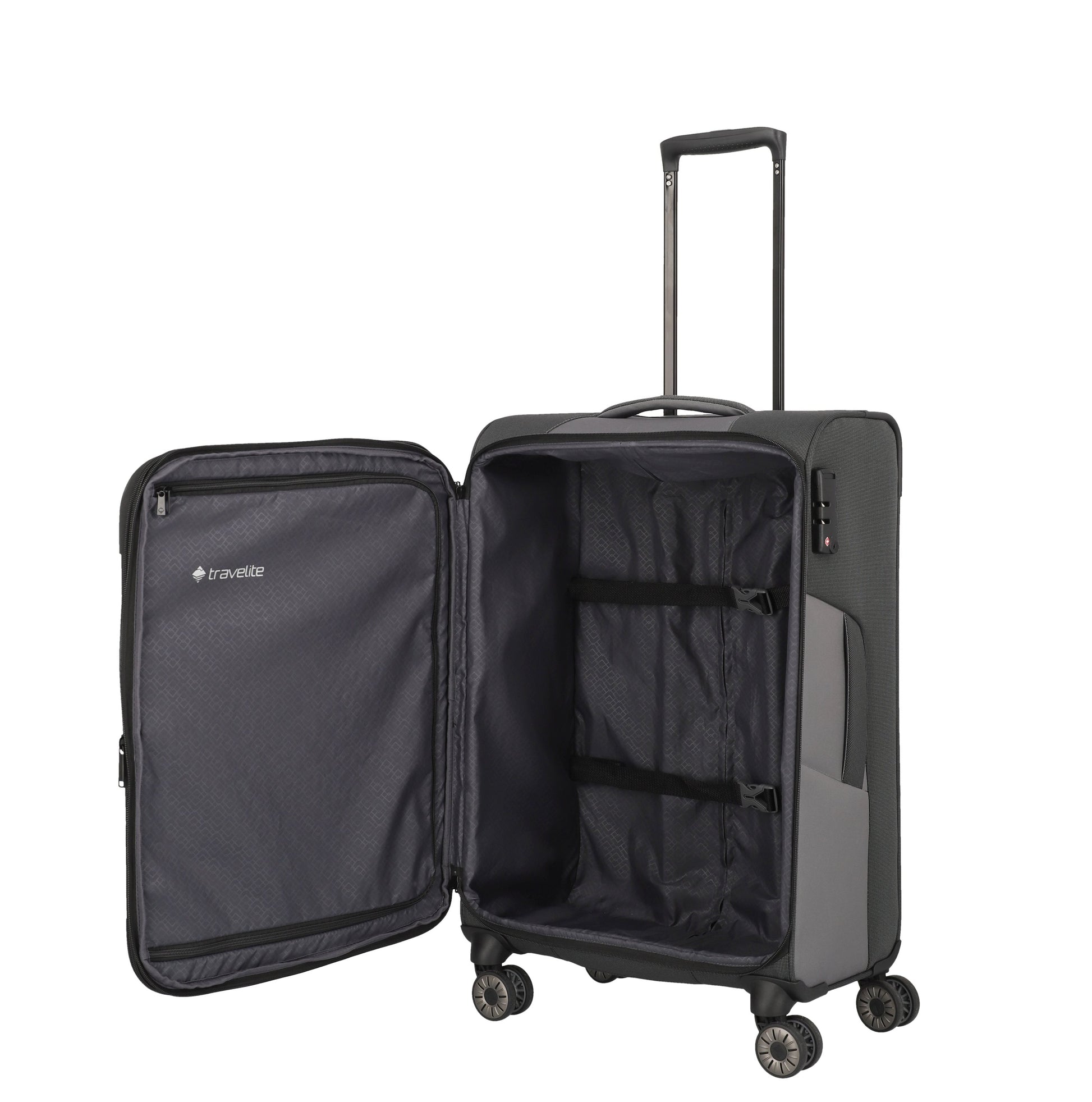 Ob Städtetrip oder Fernreise – mit dem Travelite VIIA Trolley reist du stressfrei und stilvoll. Der großzügige Innenraum mit praktischen Packriemen sorgt dafür, dass alles sicher verstaut ist. Dank der leichtgängigen Doppelrollen und den komfortablen Ober- und Seitengriffen lässt sich der Trolley mühelos manövrieren – selbst an vollen Bahnhöfen oder in engen Flugzeuggängen.