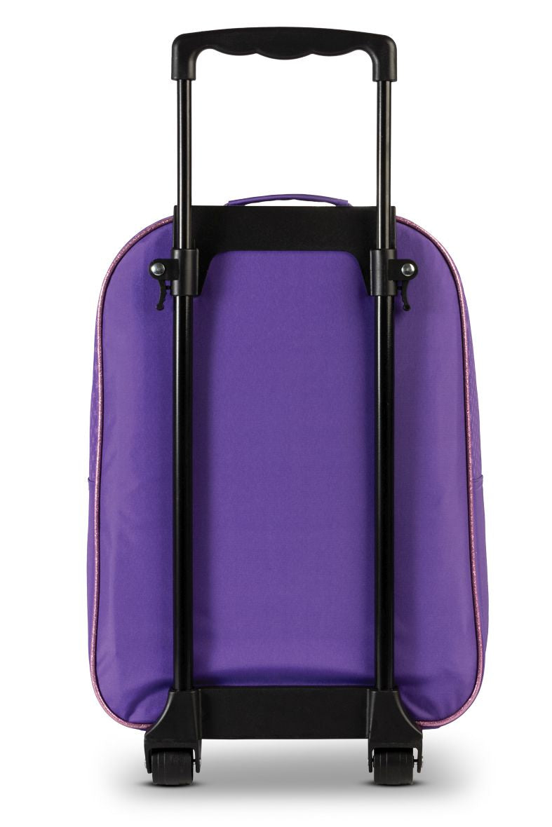 Der Unicorn Academy Kindertrolley ist ein farbenfroher Rollkoffer mit großem Motiv, einem Reißverschluss-Hauptfach, einer Reißverschluss-Vortasche, ausziehbarem Trolley-Gestänge, Tragegriff, zwei Rollen und zwei Stellfüßen für stabilen Stand.