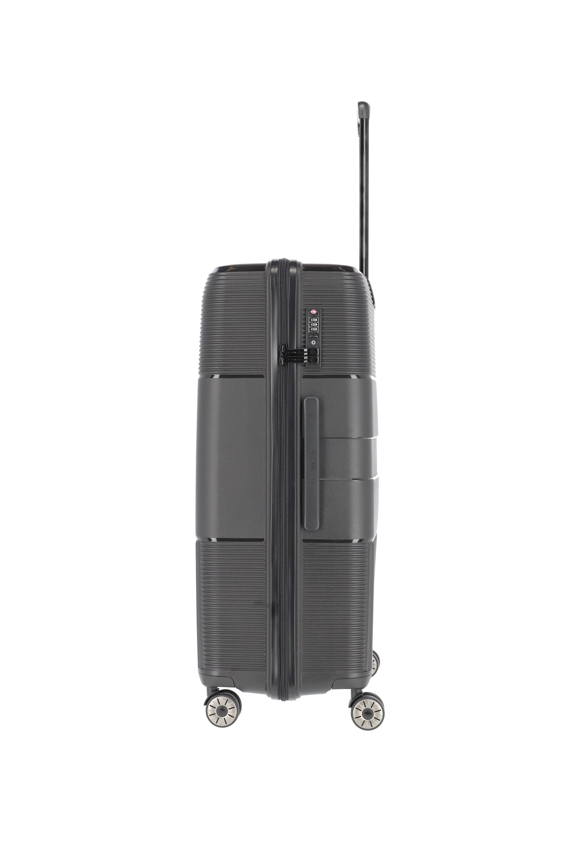 Der WAAL 4-Rad Trolley in Schwarz verbindet modernes Design mit praktischer Funktionalität – dein idealer Begleiter für jede Reise. Aus robustem Material gefertigt, überzeugt er durch seine Leichtigkeit und Strapazierfähigkeit. Die vier leichtgängigen Doppelrollen ermöglichen ein müheloses Manövrieren auf verschiedensten Untergründen. Dank des arretierbaren Teleskopgestänges hast du den Trolley jederzeit sicher im Griff. Im Inneren sorgt die durchdachte Aufteilung mit elastischen Packgurten und Trennwand für Ordnung und Schutz deines Gepäcks. Das TSA-Kombinationsschloss bietet dir zusätzlichen Schutz vor unbefugtem Zugriff.
