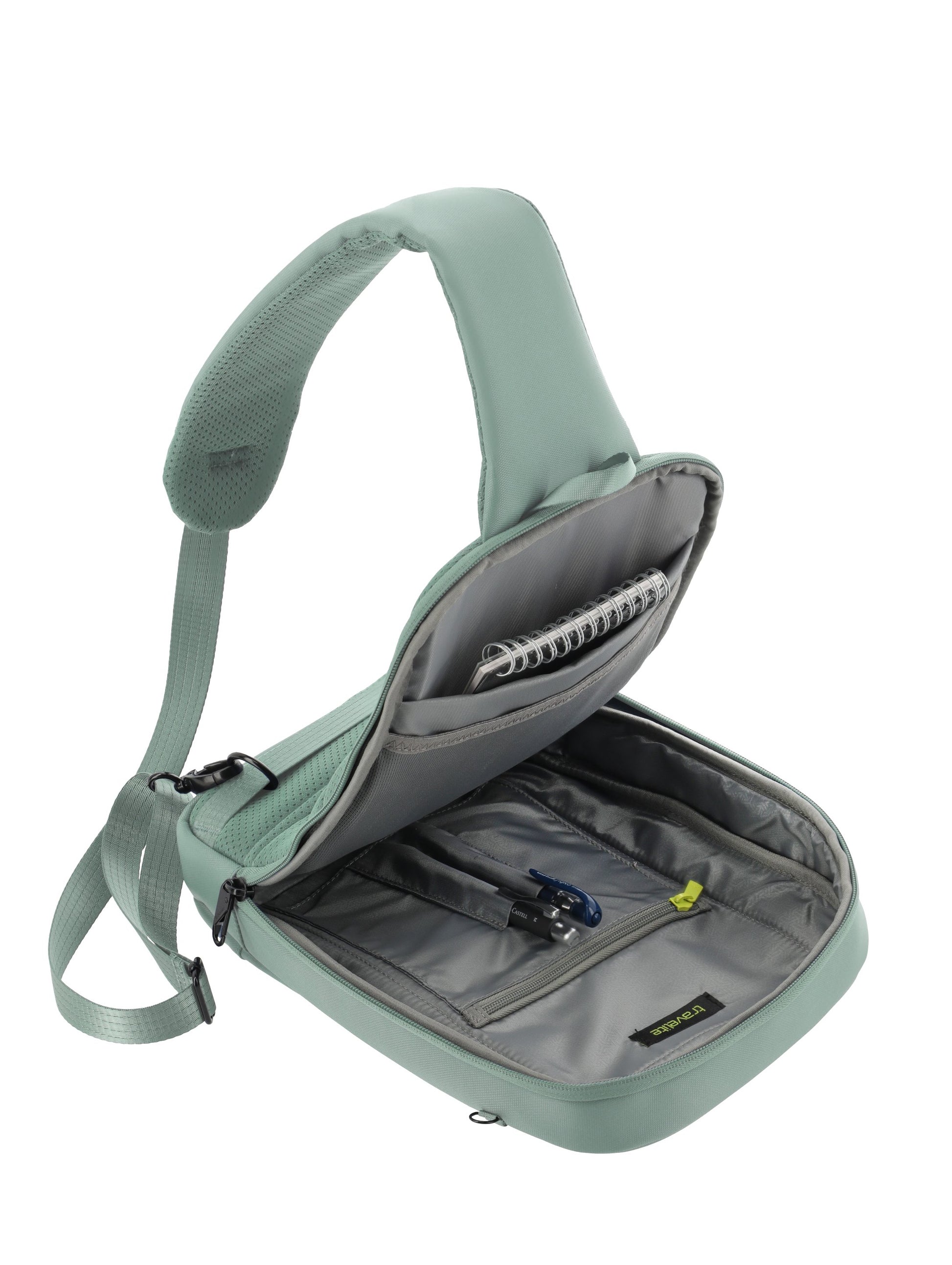 Kompakte Crossbody-Tasche in Salbei mit smarten Fächern und verstellbarem Gurt – die ideale Ergänzung zu Koffer, Trolley und Handgepäck für schnelle Organisation auf Reisen. Robust, leicht zu tragen und immer stilsicher.