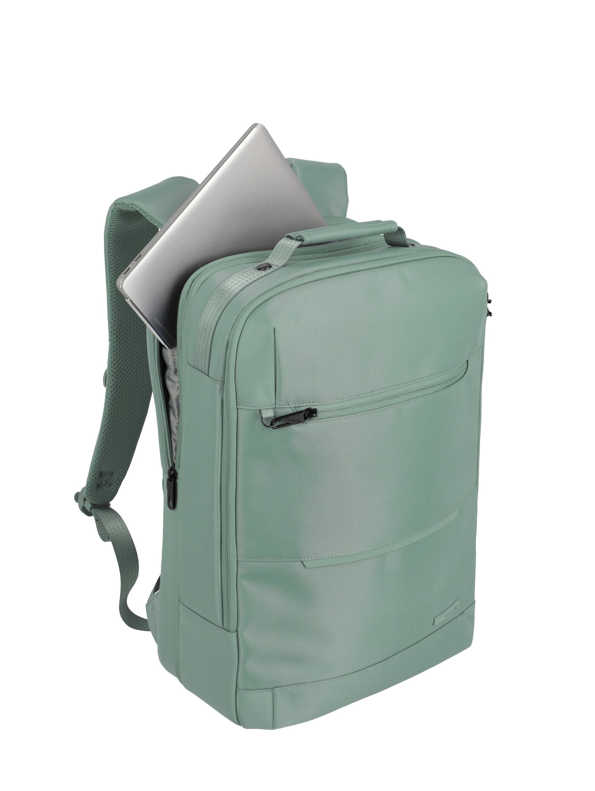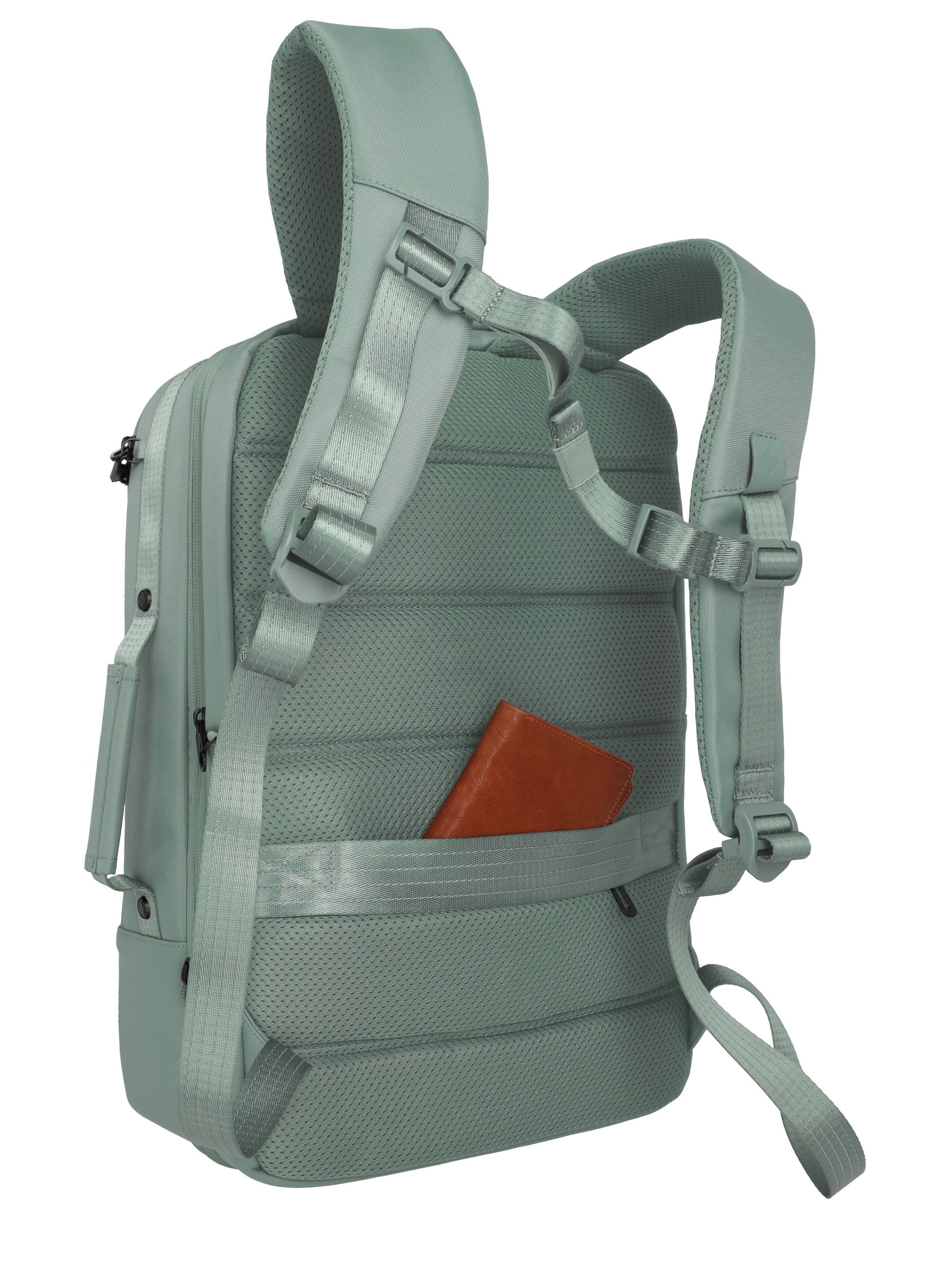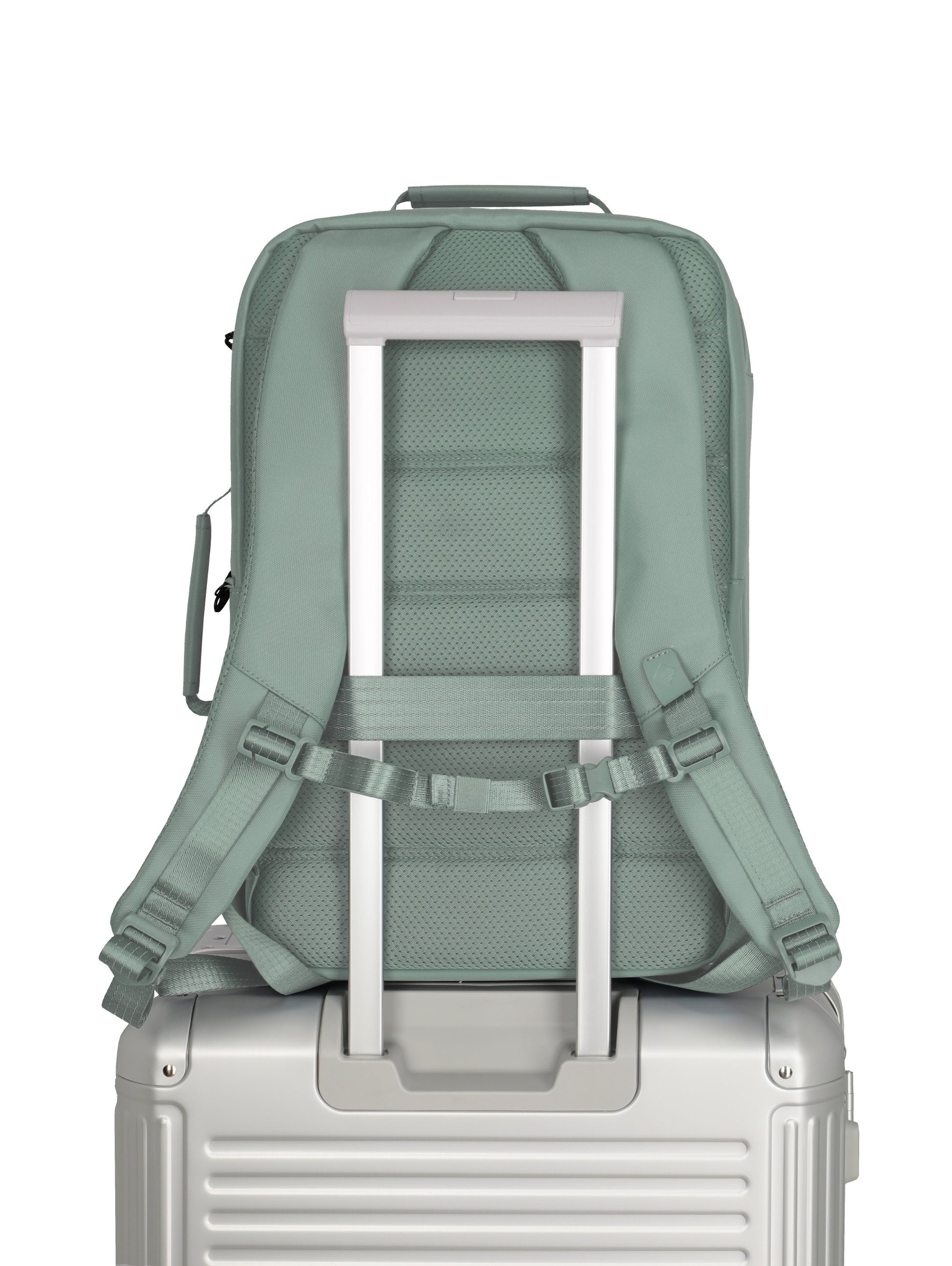 Geräumiger Rucksack in Salbei mit cleverer Organisation, robustem Material und hohem Tragekomfort. Perfekt für Reisen, Handgepäck und den Alltag – harmoniert mit Reisetasche, Trolley und Koffer.