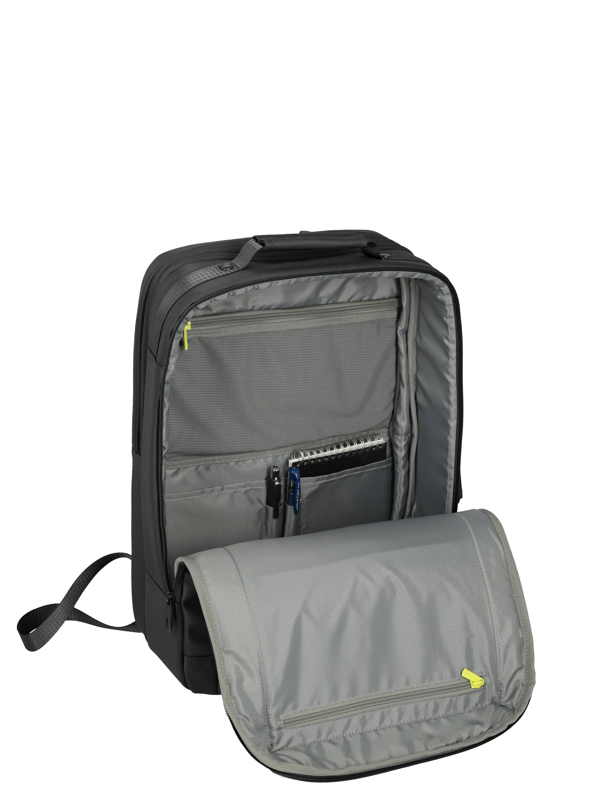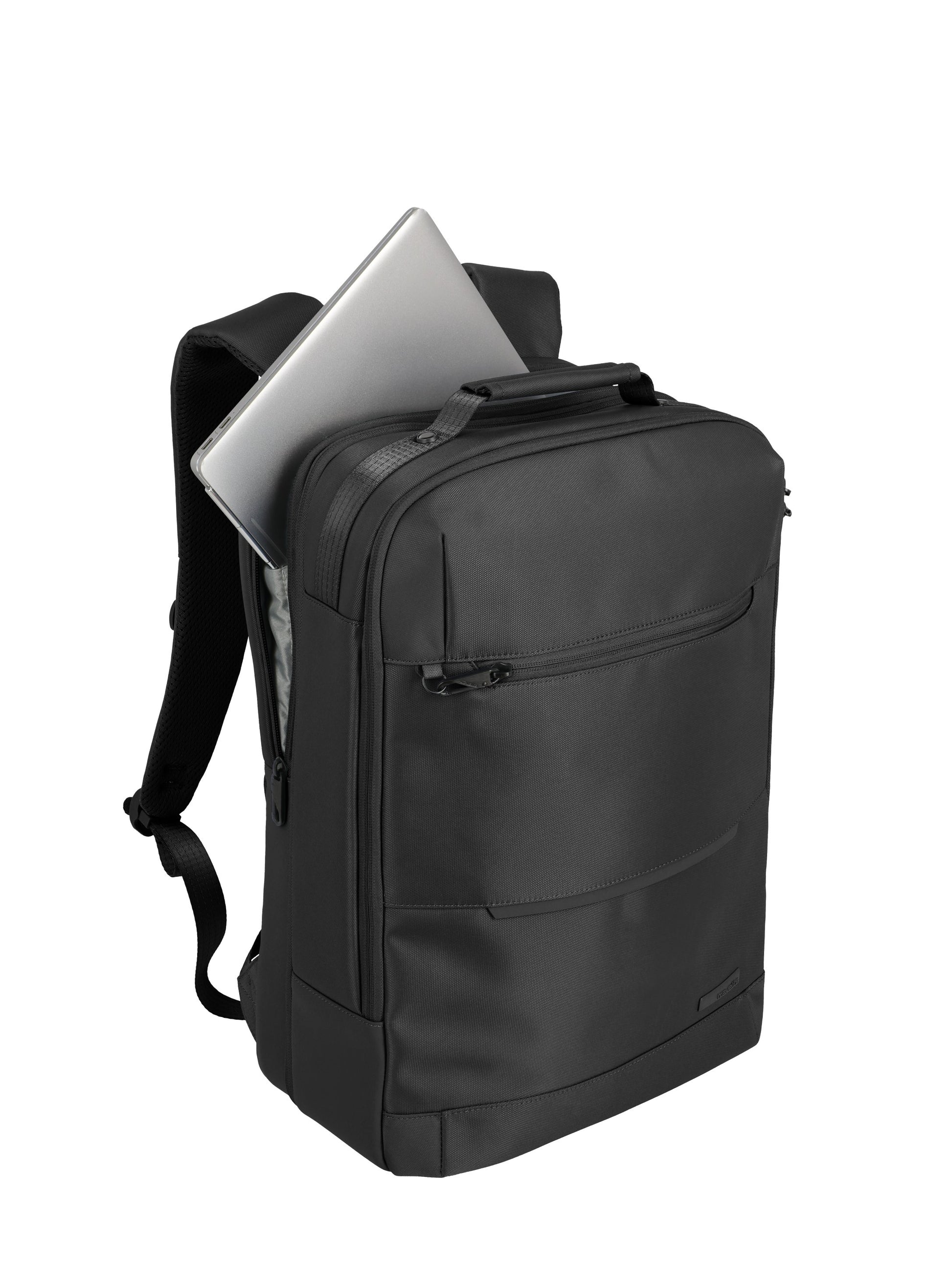 Geräumiger, robuster Rucksack in zeitlosem Schwarz mit cleverer Innenaufteilung und hohem Tragekomfort – perfekt für Alltag, Uni und Reisen, ob solo, als Handgepäck-Begleiter oder in Kombination mit Koffer und Trolley.