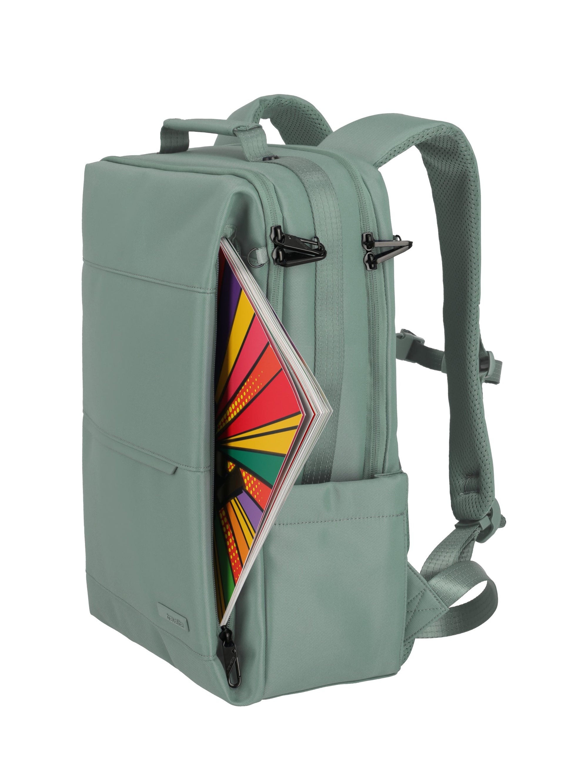 Robuster, komfortabler Rucksack in Salbei mit smarten Fächern und handgepäckfreundlichem Format – ideal für Arbeit, Uni und Reisen. Perfekte Ergänzung zu Koffer, Trolley und Reisetaschen.
