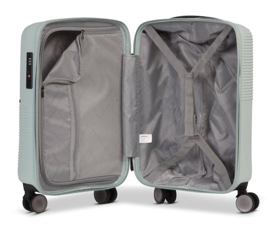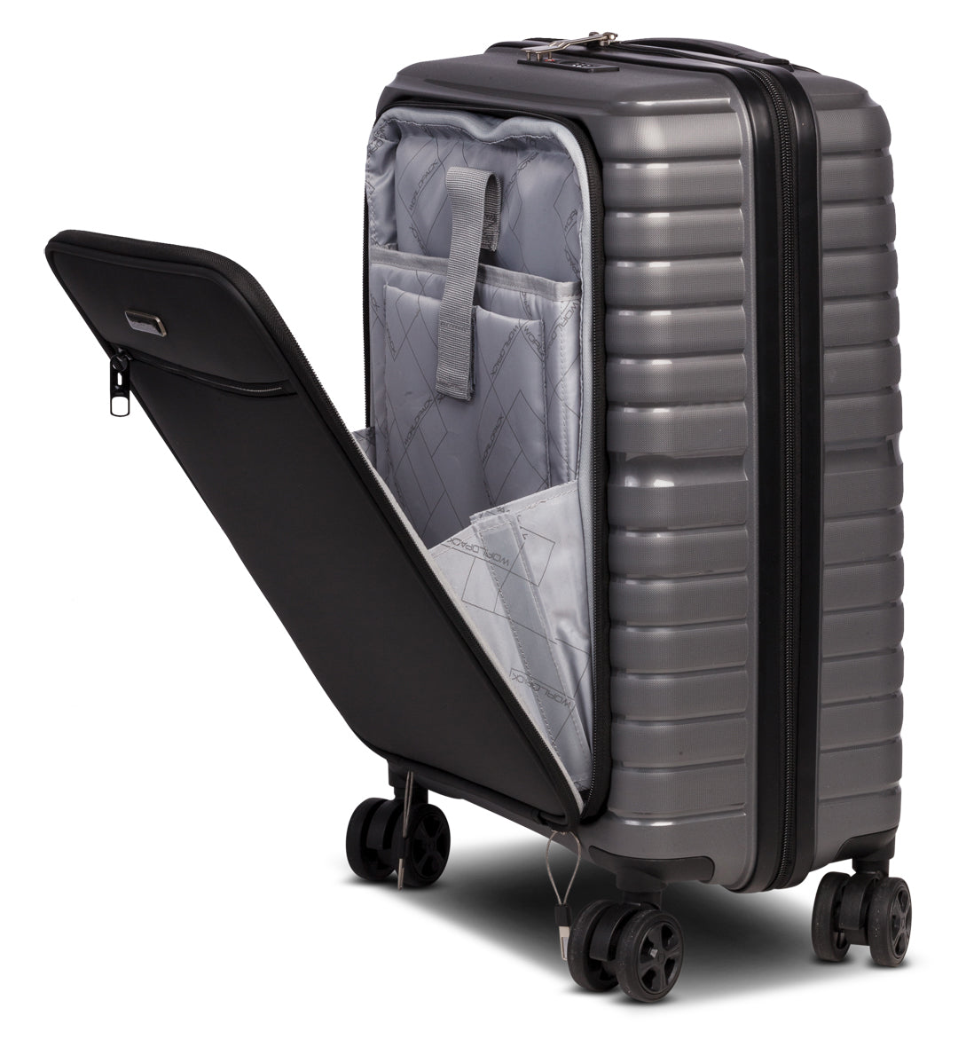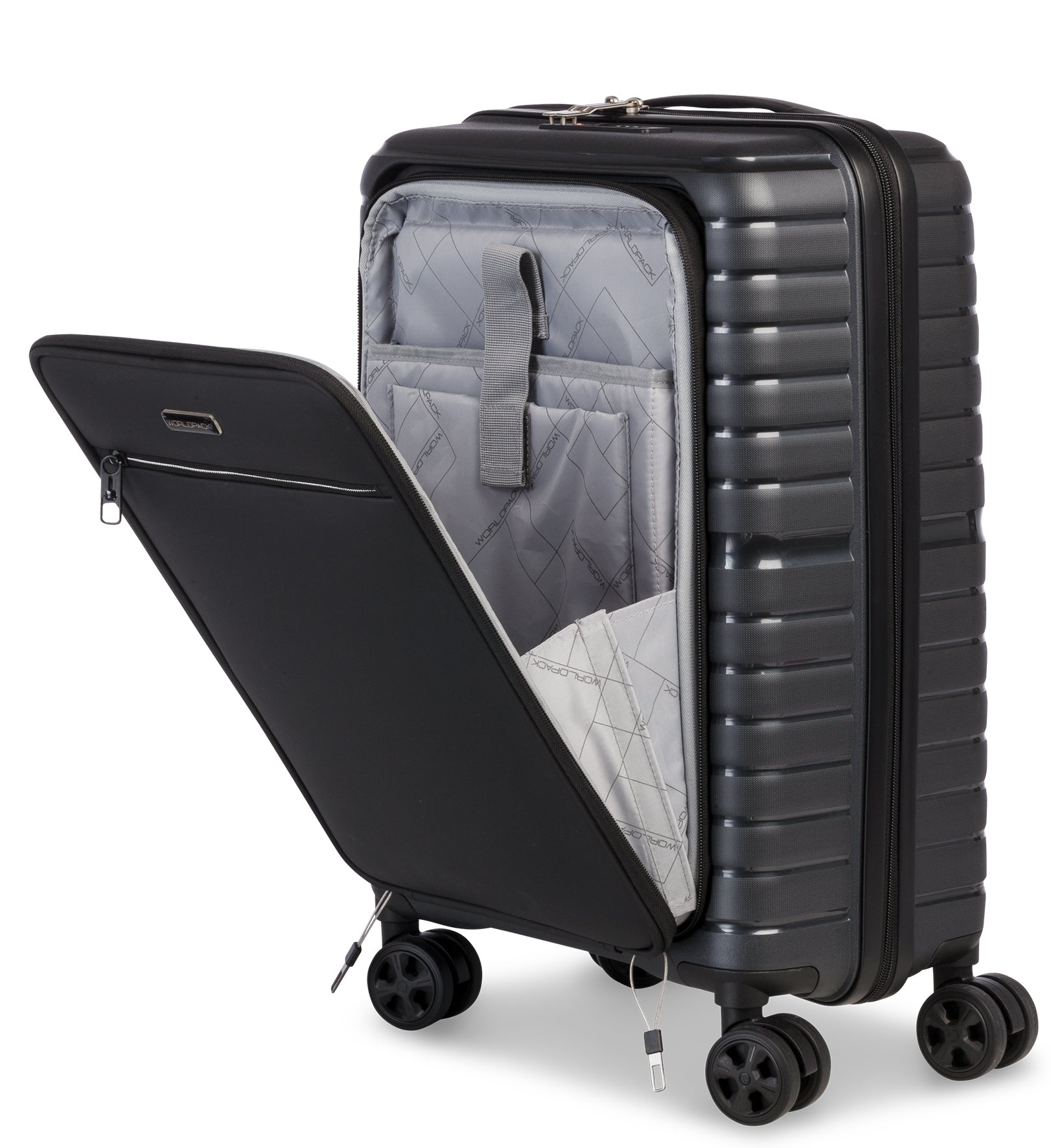 Robuster Handgepäck-Trolley aus Polypropylen mit 360°-Doppelrollen, TSA-Schloss, organisiertem Innenraum und Fronttasche mit Laptopfach – für schnellen Zugriff und komfortables Reisen. Ideal für Kurztrips, City- und Business-Reisen.
