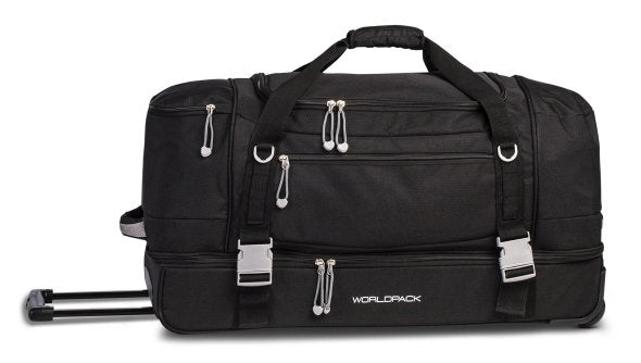 Die Worldpack Rollenreisetasche in schwarz kombiniert Funktionalität mit elegantem Design. Mit ihrem robusten Material und den leichten Rollen ist sie der perfekte Begleiter für Ihre Reisen – ob Kurztrip oder längerer Aufenthalt. Das geräumige Hauptfach bietet viel Platz und dank praktischer Außentaschen sind wichtige Dinge schnell griffbereit. Die stabile Teleskopstange und die leichtgängigen Rollen sorgen für angenehmes Handling auf jedem Untergrund.